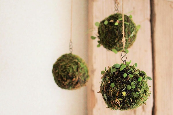 講師【榊麻美植物研究所】江戸時代の頃、庭師が出入りしていた屋敷の軒先に涼を取る目的で吊るしていた「吊りシノブ」をベースに作った吊り苔玉。作りやすいようマメヅタを使った吊り苔玉を作ります。