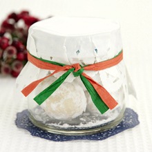 小瓶に入れてフタをして、上にレースペーパーを乗せると、可愛いラッピングの完成!