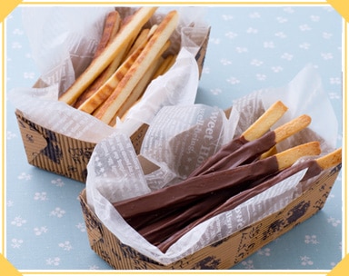 塩プレッツェルは塩をお好みでまぶす。チョコがけプレッツェルは、刻んだ板チョコを湯煎で溶かし、トッピングし固まれば完成。 |