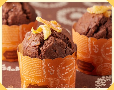 スプーンでカップの7~8分目まで入れ、180度のオーブンで15分焼き、オレンジピールをのせ、さらに5分ほど焼く。竹串をさして、生地がついてこなければ焼きあがり。 【ポイント】 |
