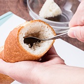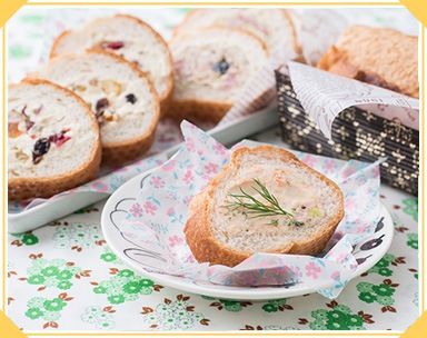 *スタッフドバケット* 今年の流行りとなる注目のパンがコレ! 簡単に作れて、パーティやお弁当にも便利と、 人気急上昇中の「スタッフドバケット」に挑戦してみましょう。 おやつにぴったり!スイートなデザート系と、 おなかも満足!ボリューム満点のおかず系を紹介します。 かわいくラッピングしてお土産やプレゼントにも! ![]() 基本のスタッフドバケット