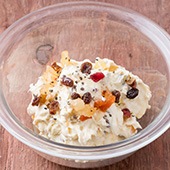 ミックスドライフルーツはブランデーをかけて、電子レンジで軽く加熱する。 ![]()