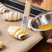 天板に(2)を並べ、はけで卵水を薄く塗る。