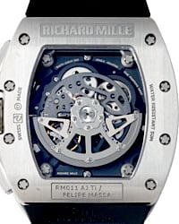 | ムーブメントにもこだわりが随所に見られます。 チタンやカーボンなど軽く強度のある素材を用いることで軽量化を図っており、「可変慣性モーメントローター」というチタン製のローターにホワイトゴールド製の調整可能なフィンを備えることによって、 デスクワークの際などの少ない運動量でも回転エネルギーを向上させることが可能なのです。 驚くべきは、2010年にグランドスラムを制したテニスプレーヤーのラファエル ナダル選手や、過酷極まるF1のフェラーリ専属ドライバー、フェリペ マッサ選手が試合中・レース中でさえリシャール ミルの腕時計を愛用していることでしょう。 話題性も然ることながら、この事実がリシャールミルの耐衝撃性と、ストレスフリーな着用感を証明するものとなりました。 特にナダル選手のショット時は、200Gもの重力加速度が時計にかかっていると言われています。 比較としてF1では20G、ジェットコースターでは1.5Gほどです。 |