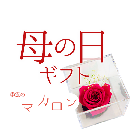 カーネーションプリント入りマカロンや、プリザーブドフラワーとの特別なセット。