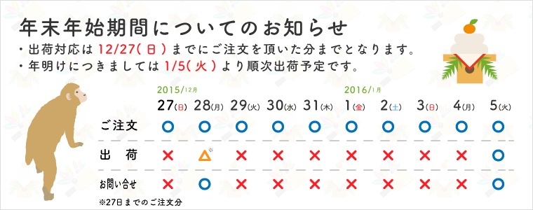 年末年始の営業日についてのお知らせ