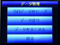 データを管理します。当日データをセーブ、データ送り、全データ消去の3項目を操作可能です。 |