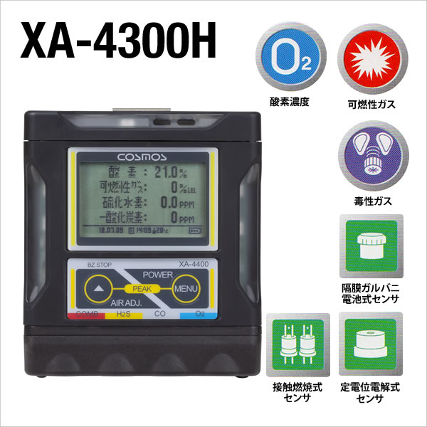 複合型ガス検知器(酸素/硫化水素/可燃性ガス【メタンorイソプタン校正】) XA-4300H