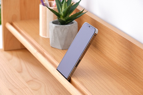 上棚にはスマホやタブレットを差し込めるスリットを設けました。