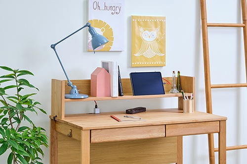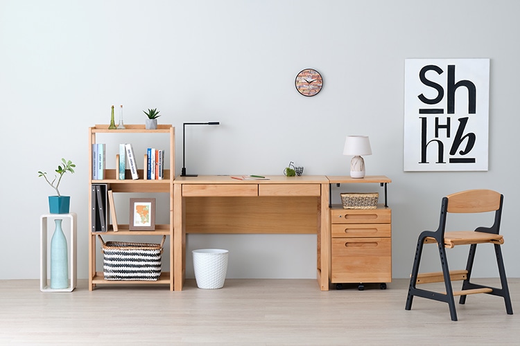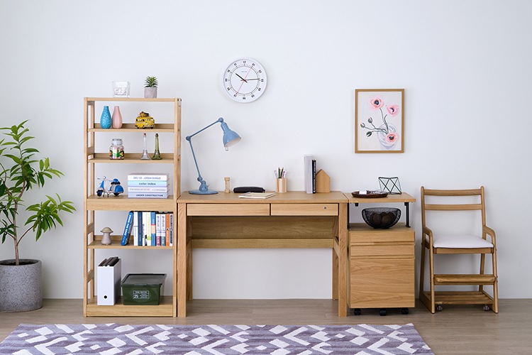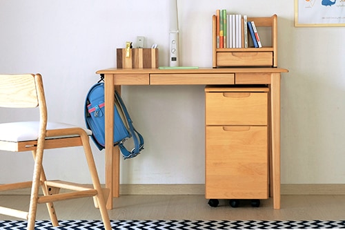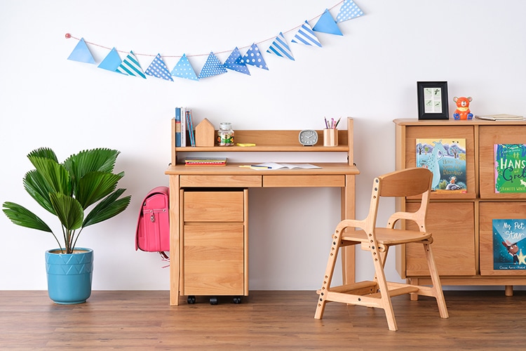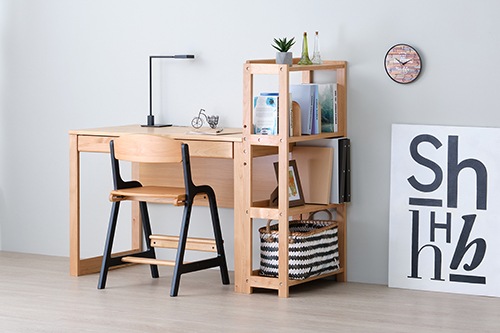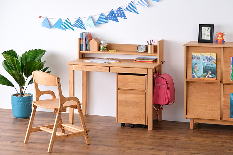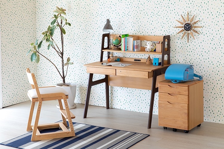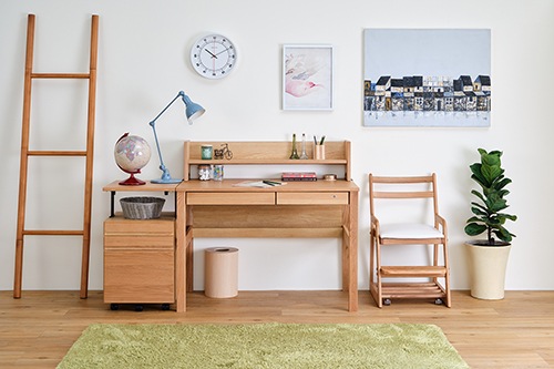 このお子様が自然と学びに向かえるような空間を、天然木の家具を使って作ってみるのはいかがでしょうか。