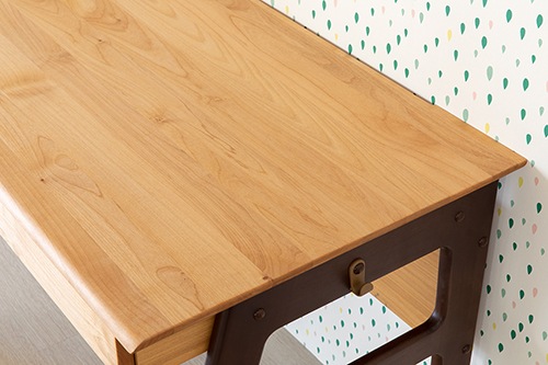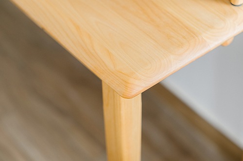 天板はアルダー無垢材、脚部にはラバー無垢材使用。