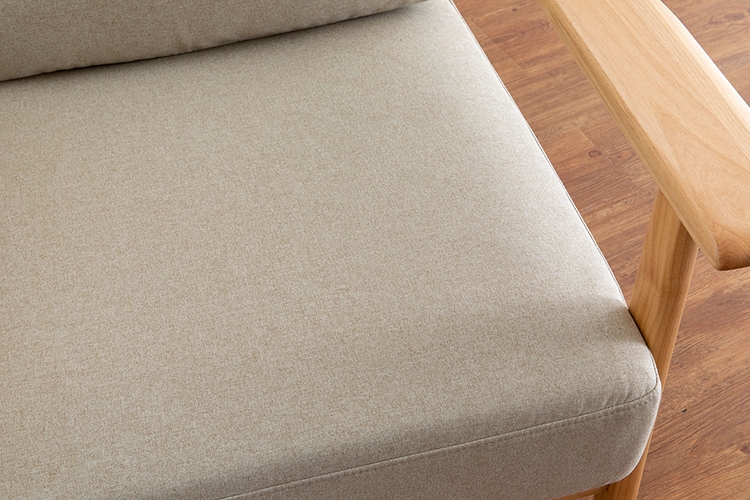 背もたれやアーム部分に天然木を使用したソファは見た目も軽やかで涼し気な印象。