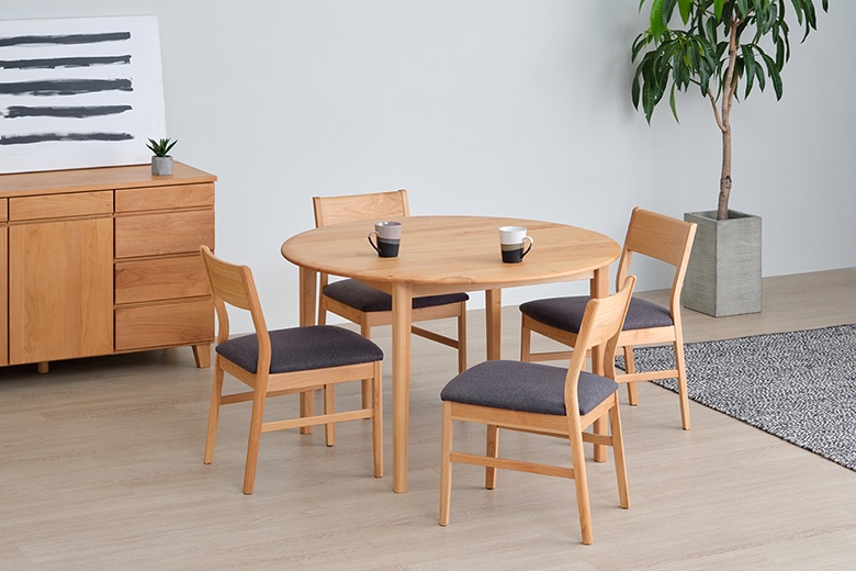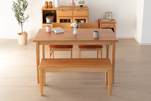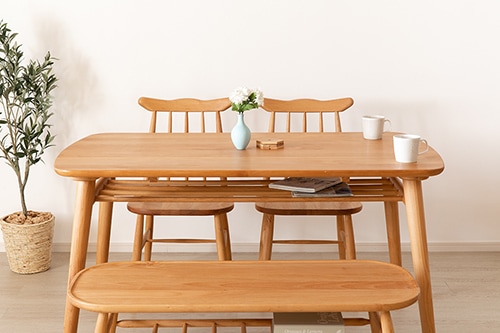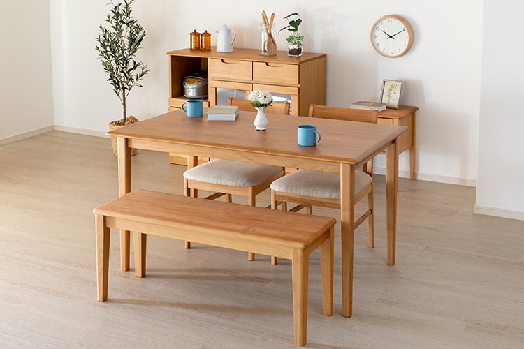 木のぬくもりが感じられる天板を囲めば、自然と「いただきます」の声も弾むはずです。