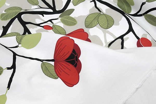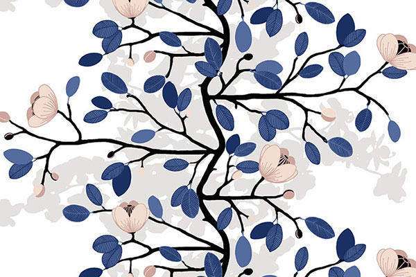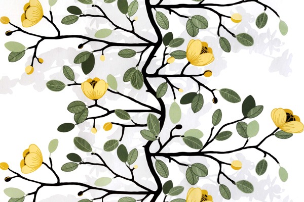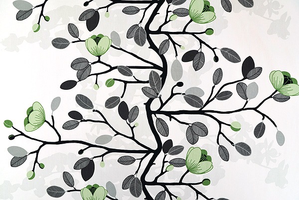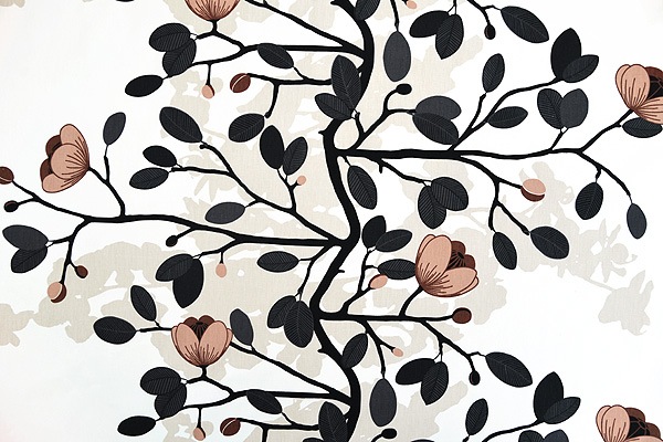 幹から伸びる枝とお花が絶妙なバランス。 植物の後ろに描かれた影は程よく空間を埋めており、上品で美しい雰囲気を持つファブリックです。 カラー展開が豊富なのでお部屋の雰囲気に合わせてお選びいただけます。 厚手のしっかりとした生地です。