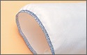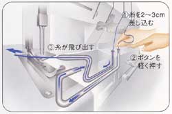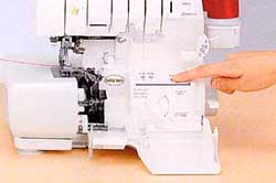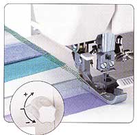 縁かがりと同時に、市販の“パイピングコード”を縫うことができます。3mm用と5mm用とがあります。 |