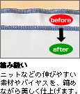 | Tシャツやトレーナーなどの袖口や裾の処理を、縁かがりと同時にすることができます。 |
