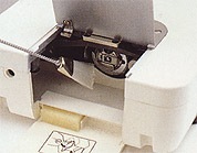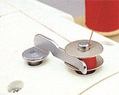 下糸巻きは糸巻き装置にボビンと糸をセットすれば準備OK。巻き終わるとボビンの回転が止るオートストップ機構です。