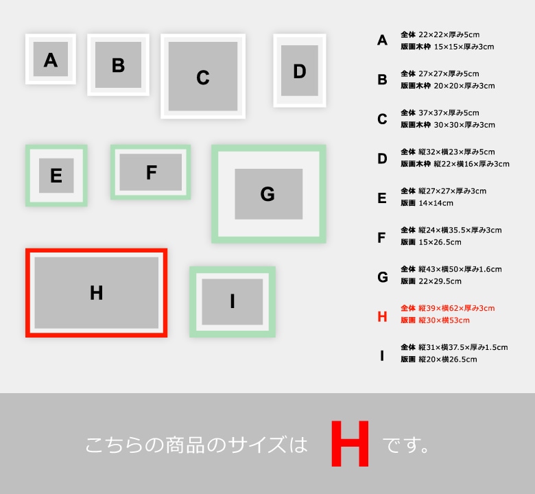 | サイズ | [Size H] 全体サイズ: 縦39×横62×厚み3cm ホワイトエンボス/マット抜き寸: 縦31×横54cm イメージサイズ: 縦30×横53cm アートボックス(裏板):縦36×横59cm |