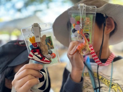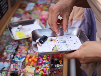 たくさんのおもちゃの中からお気に入りのコラージュを作り、