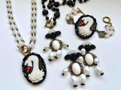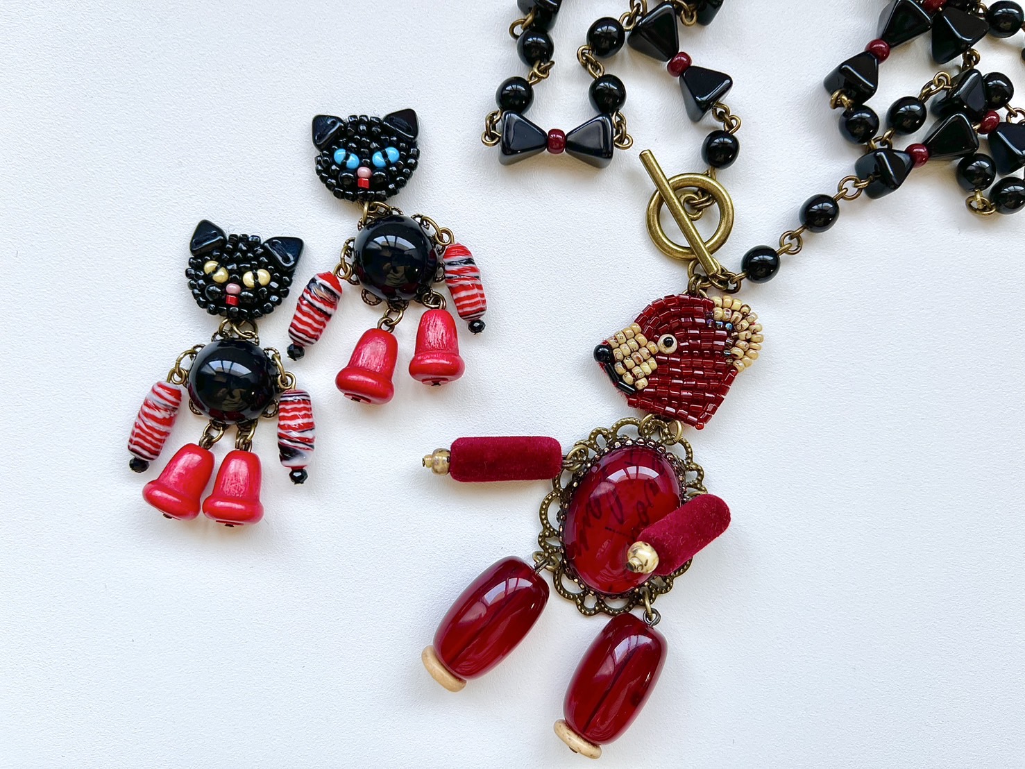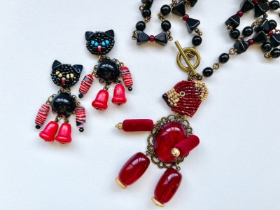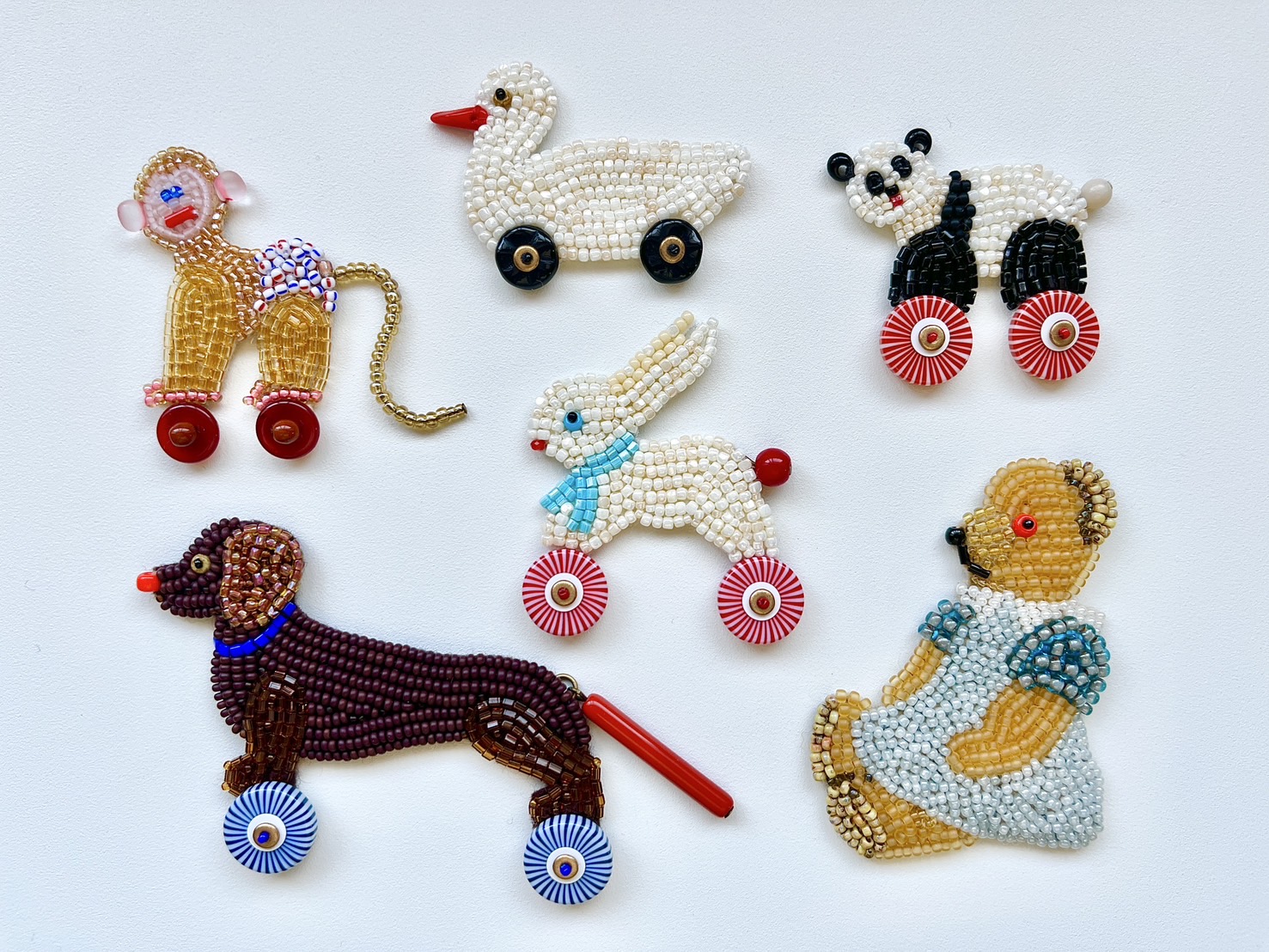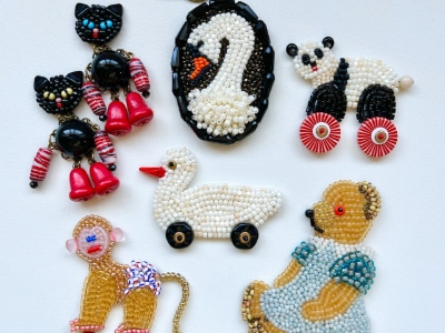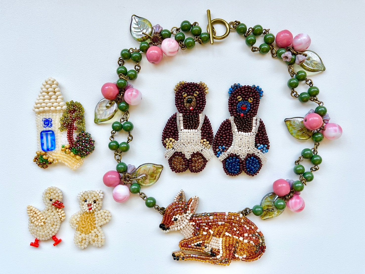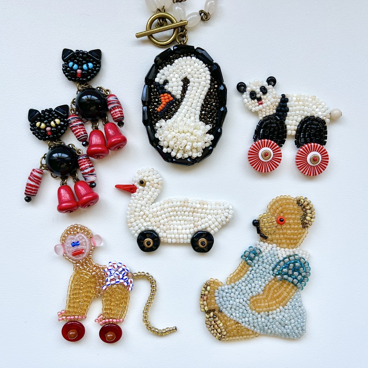 長く愛され続けてきた古いドールやぬいぐるみたちの物語を中心に、ビーズ刺繍でアクセサリーを作っています。