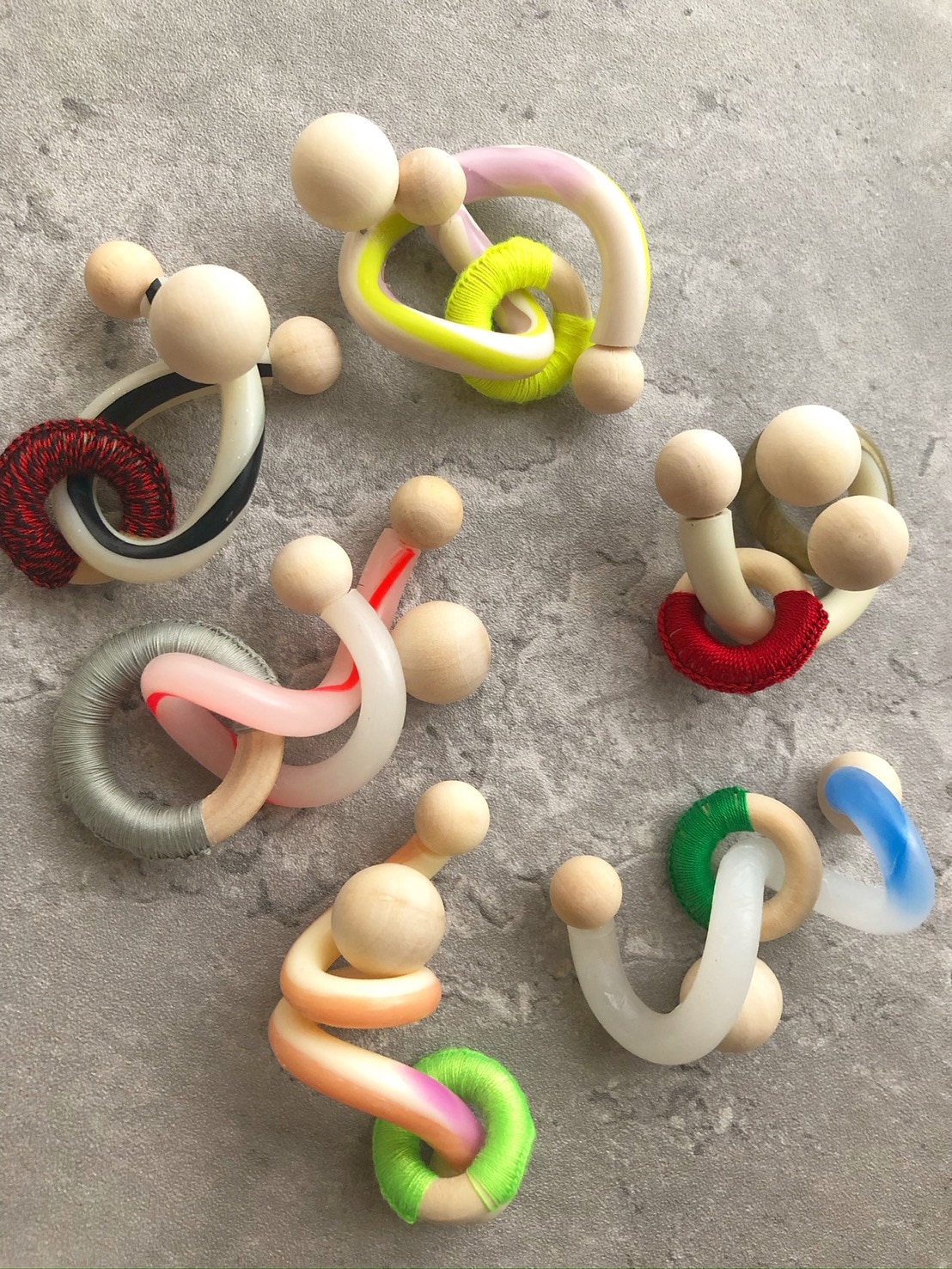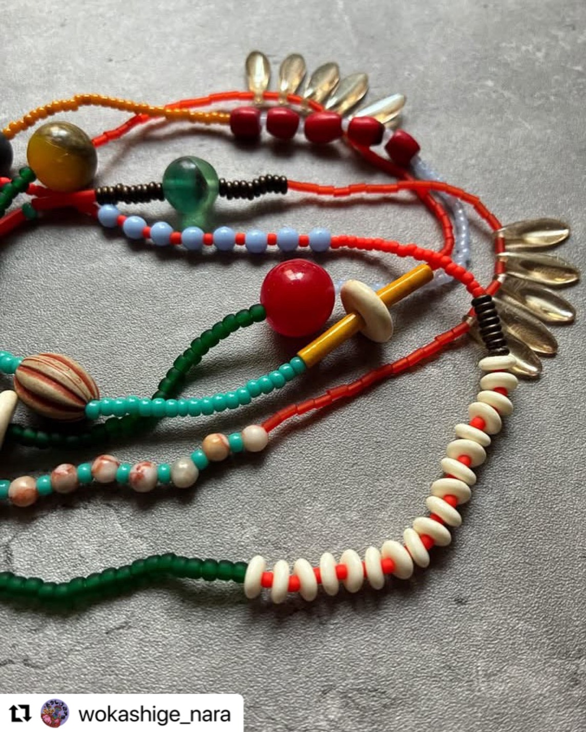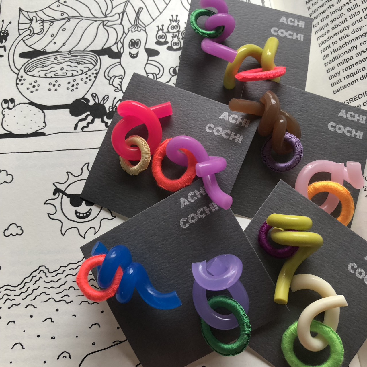 プラスチックを中心に異素材をミックスさせ、縫ったり編んだり遊び心満タンでアクセサリーを製作しています。