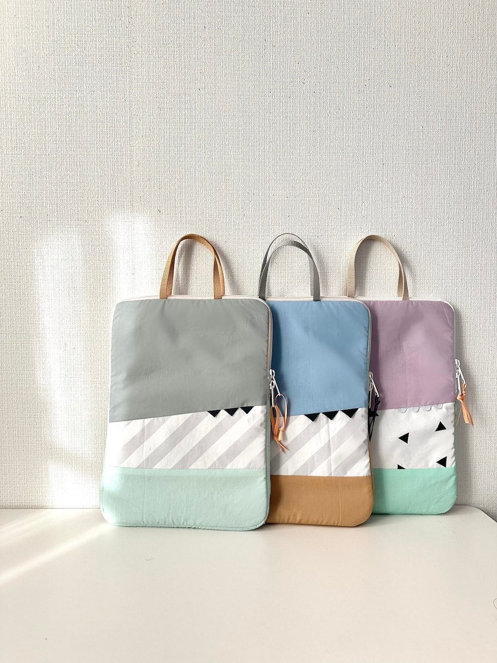 今回は入園入学シーズンに向けてのバッグ、巾着類、移動ポケットやタブレットケースなども並べます。