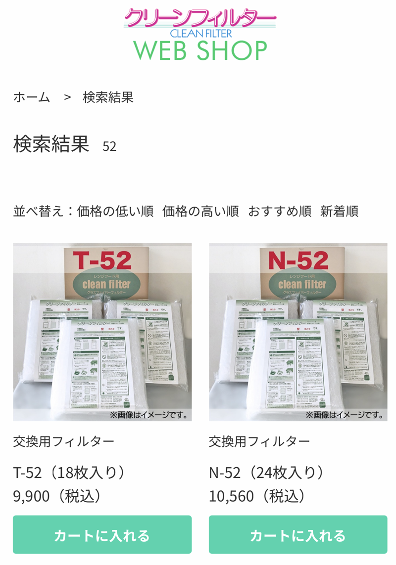 価格や枚数の違いは、フィルターサイズによるものです。お使いの型番をご確認の上、ご注文をお願いいたします。