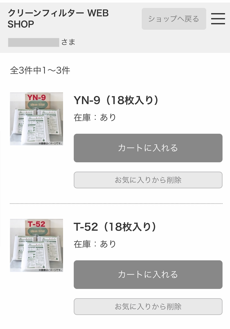 会員様のマイページから、登録済みの型番を直接「カートに入れる」ことができます。