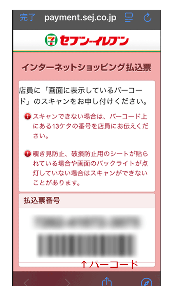 - 払込票をプリントするか、スマホ・携帯の画面を表示してコンビニでお支払いください。下はスマホのイメージです。