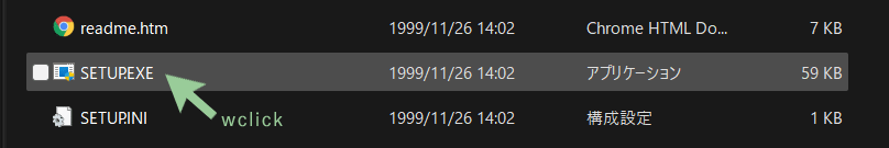 解凍したフォルダ「hpb」を開いて SETUP.EXE をダブルクリック