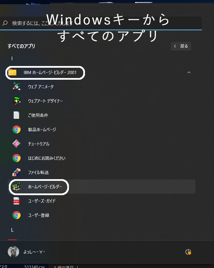 windowsボタン(スタートボタン?) > プログラム > すべてのアプリ >