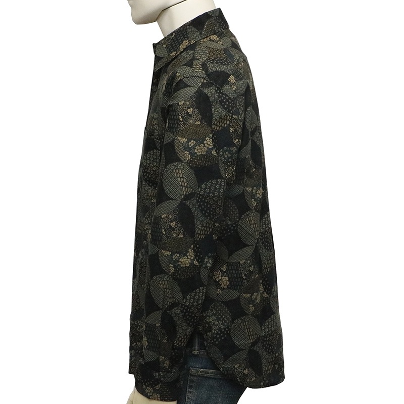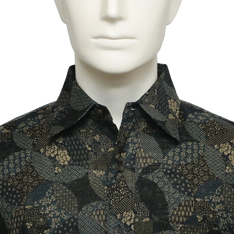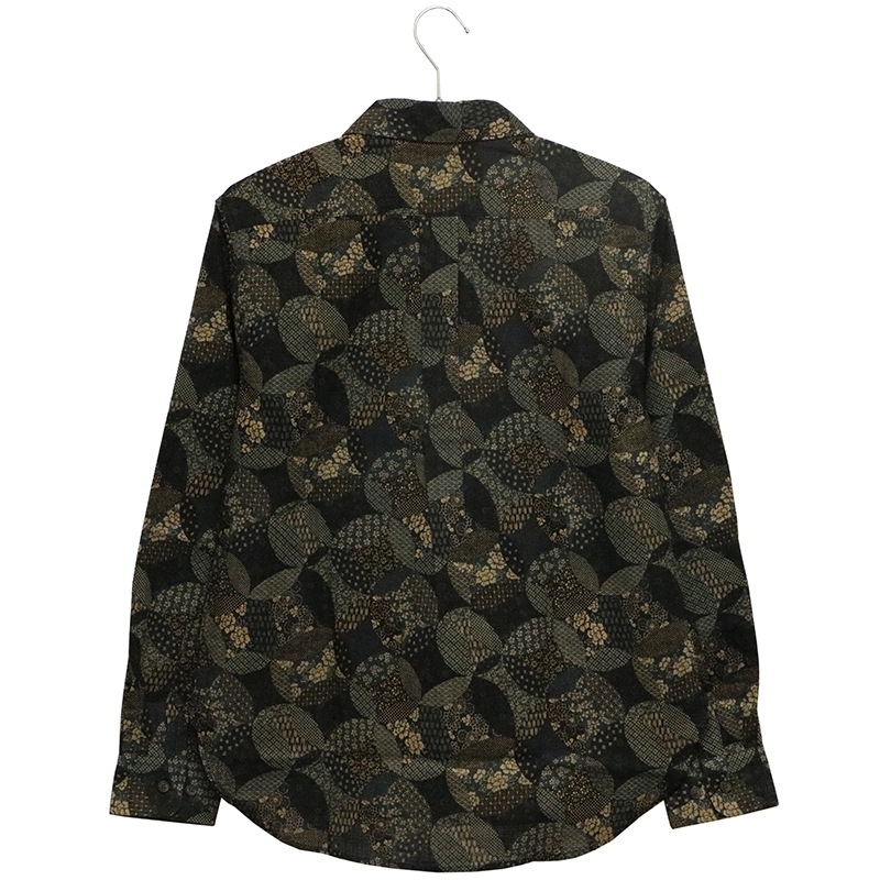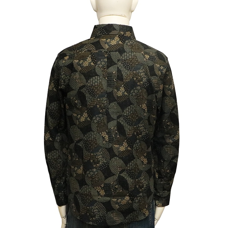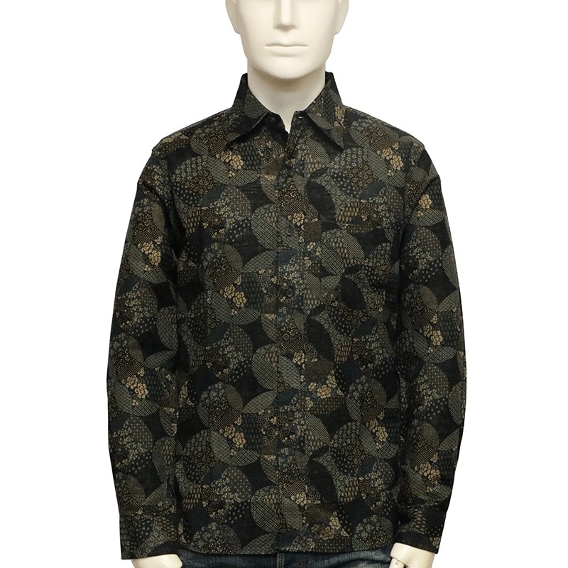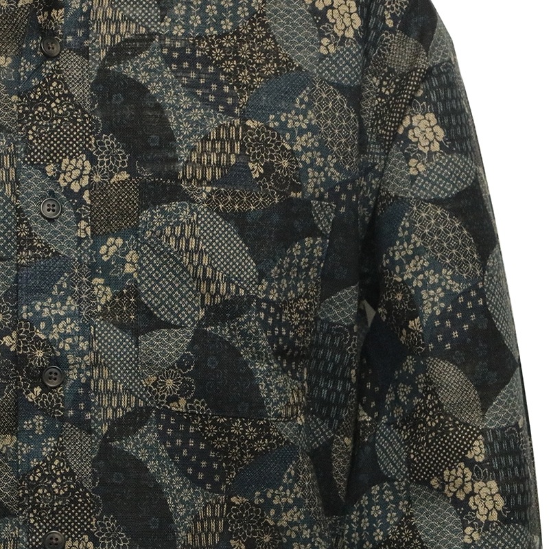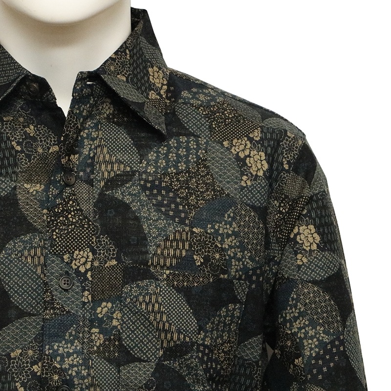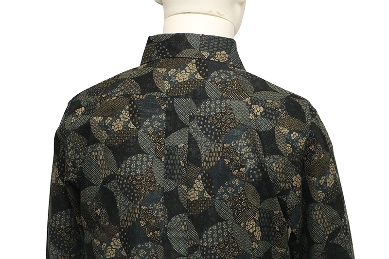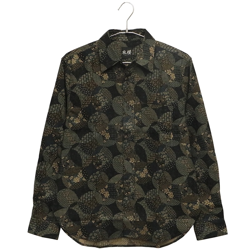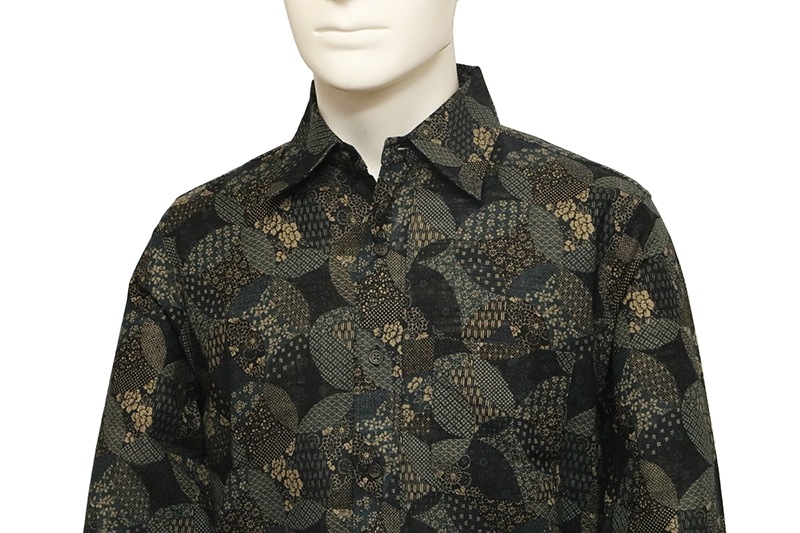 柄には変わり七宝柄を総柄であしらった長袖シャツ。