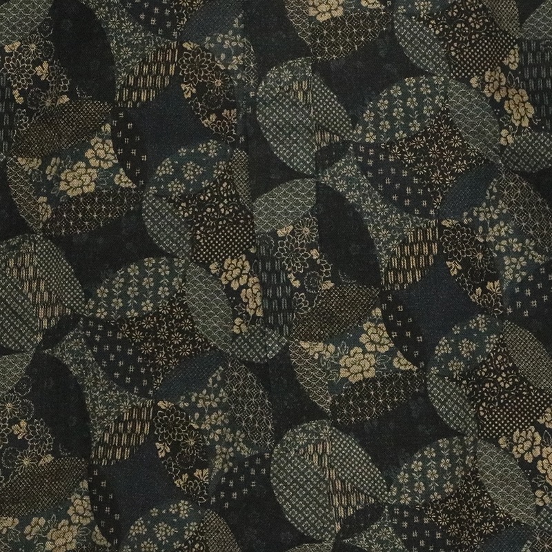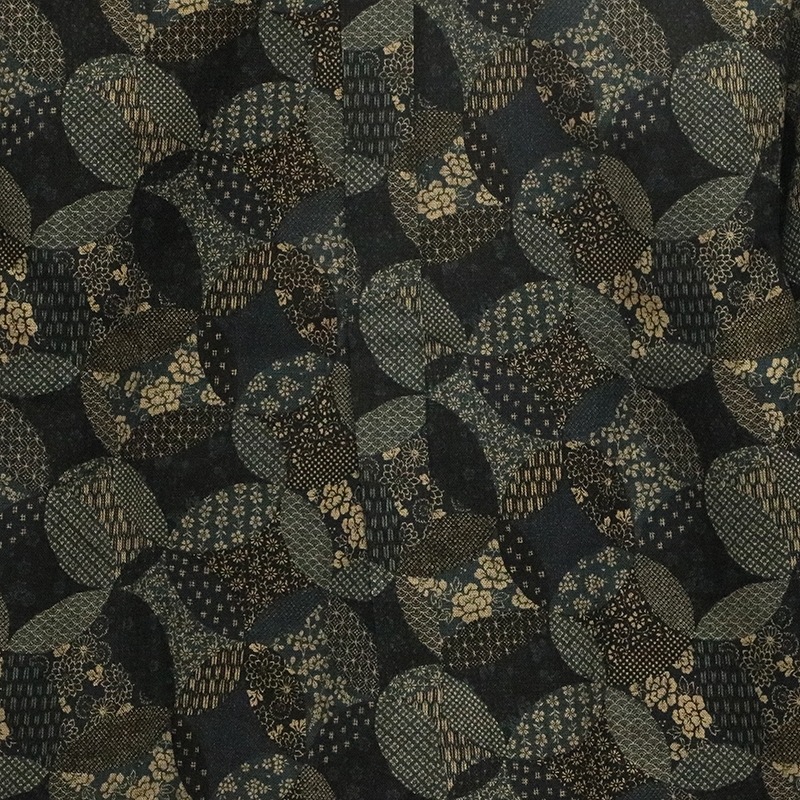 変わり七宝 柄 ムラ糸クロス生地 和柄 長袖 レギュラーシャツ