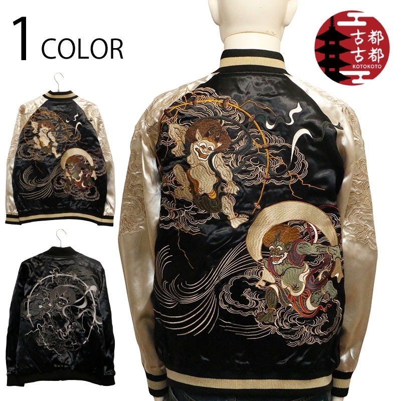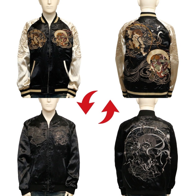 風神雷神 柄 刺繍 リバ-シブル スカジャン