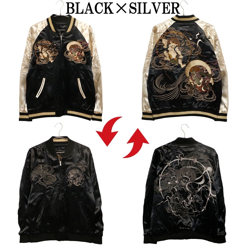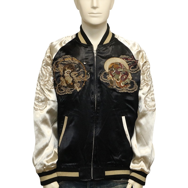 風神雷神 柄 刺繍 リバ-シブル スカジャン