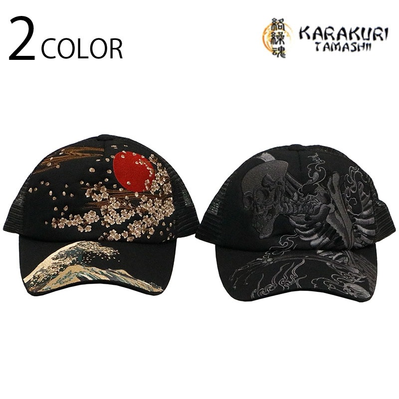 波富士桜 or がしゃ髑髏 柄 刺繍 和柄 メッシュ キャップです。