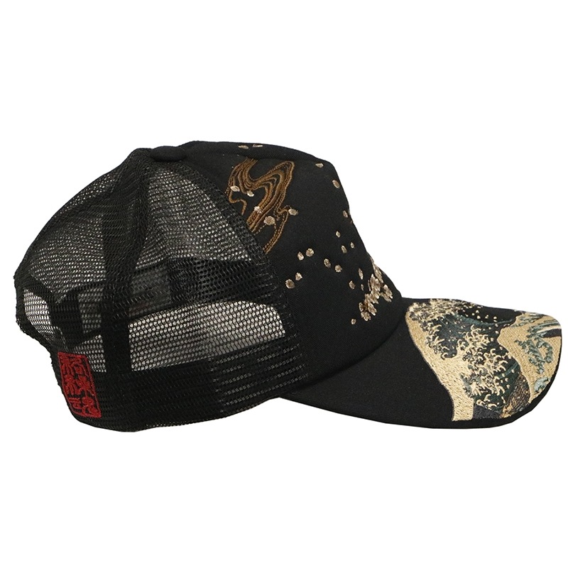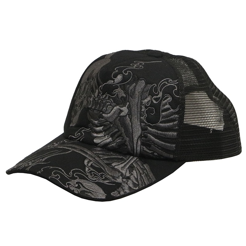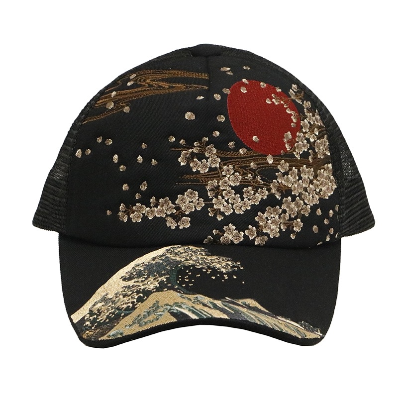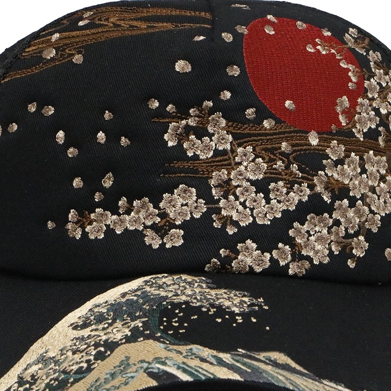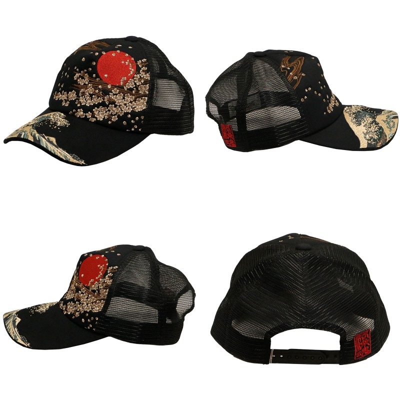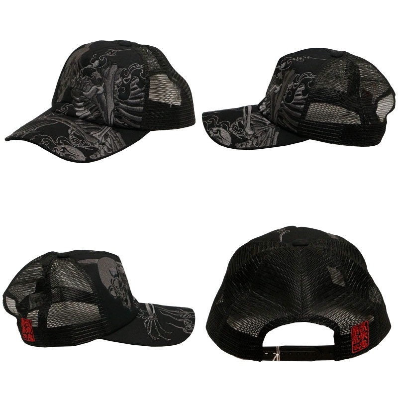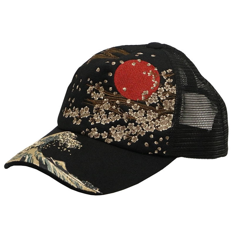 波富士桜 or がしゃ髑髏 柄 刺繍 和柄 メッシュ キャップ
