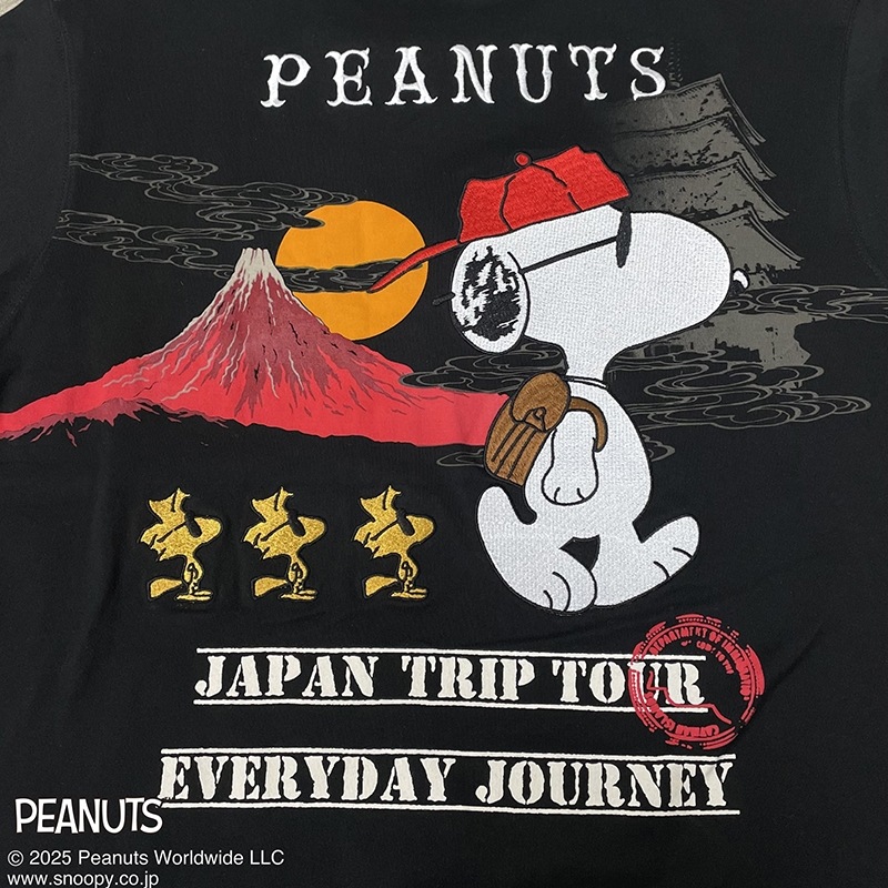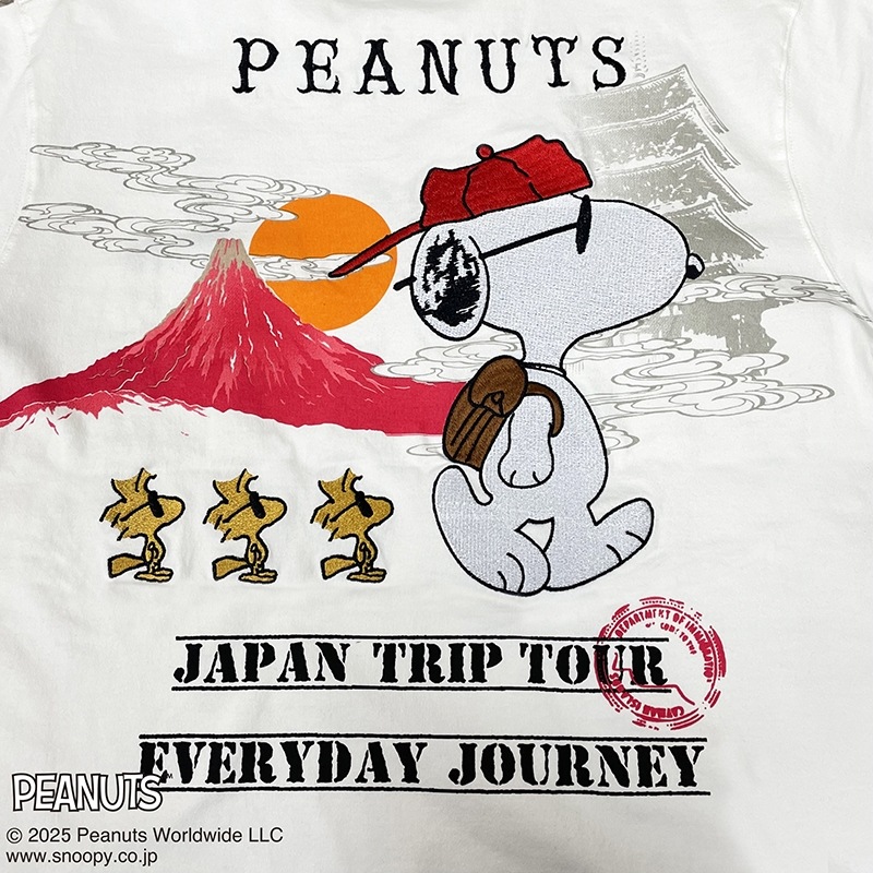 旅をするSNOOPYとWOODSTOCKを大胆に刺繍!
