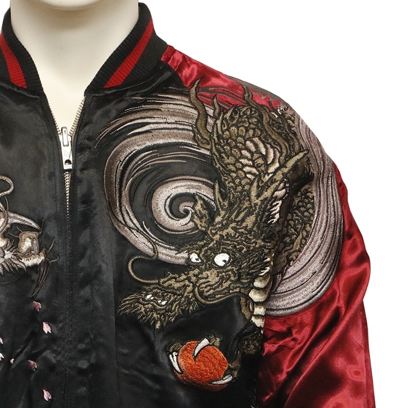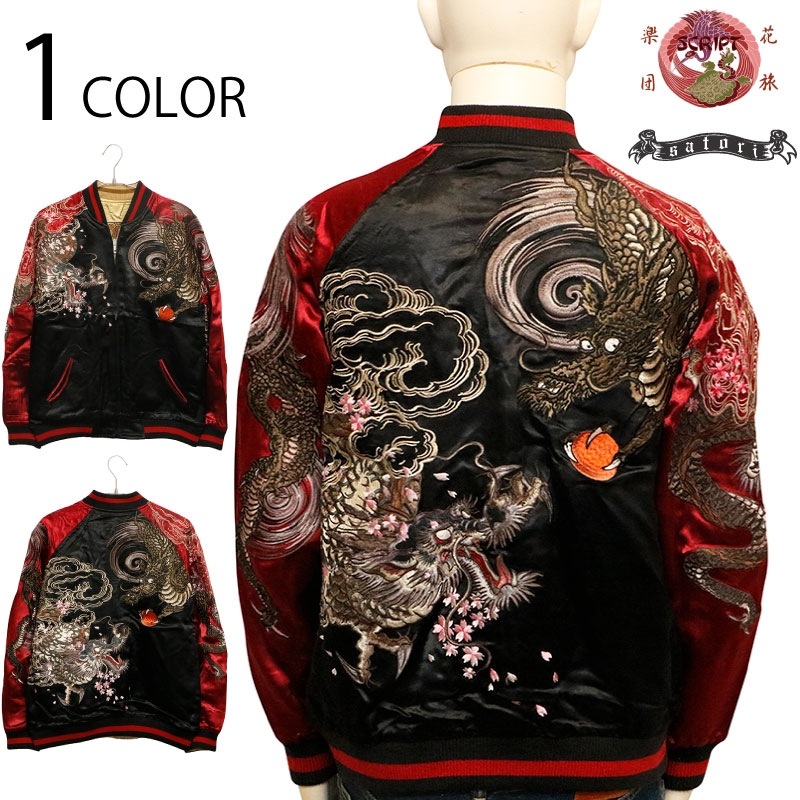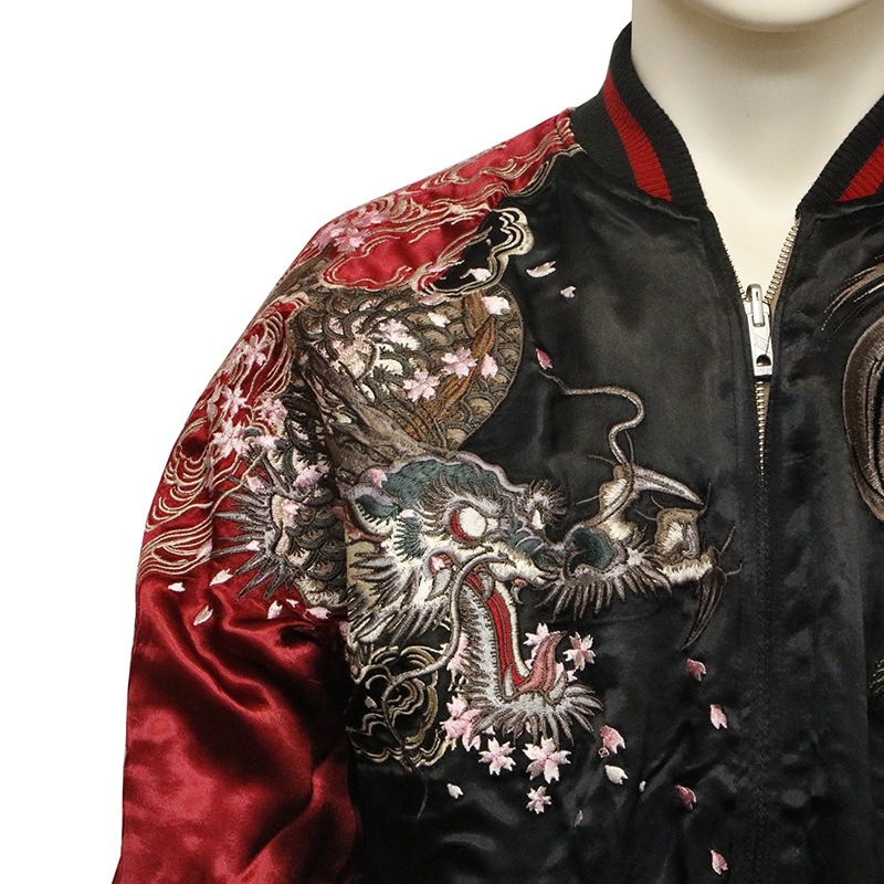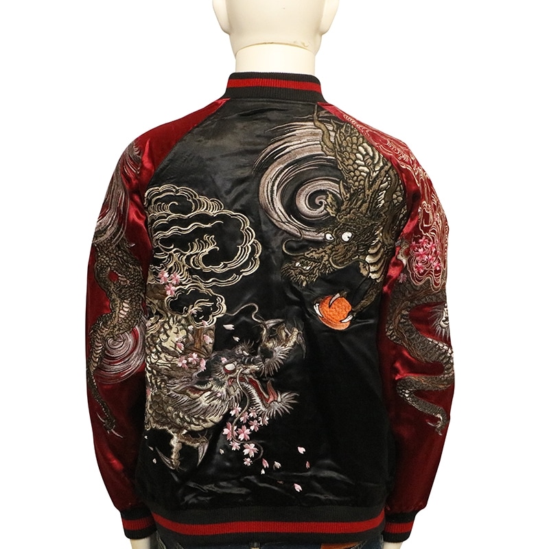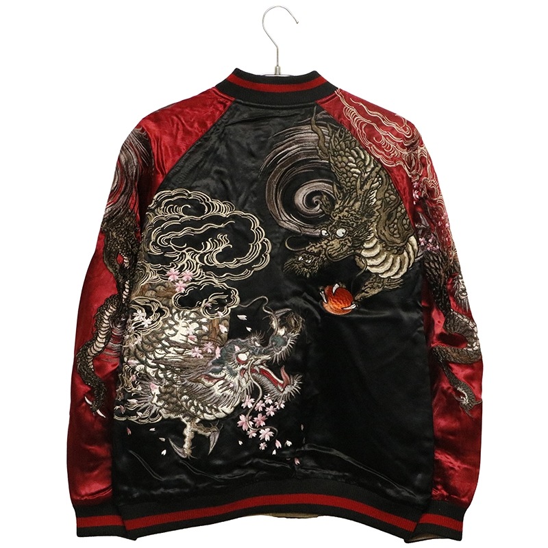 双龍 柄 刺繍 和柄 リバ-シブル スカジャン 古都古都別注