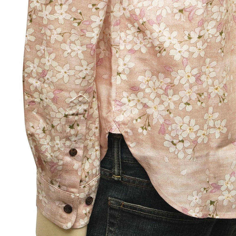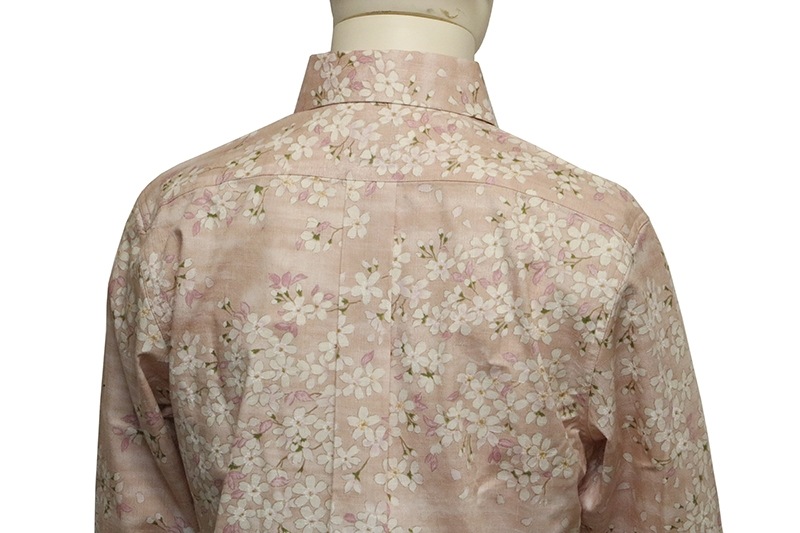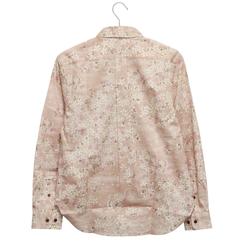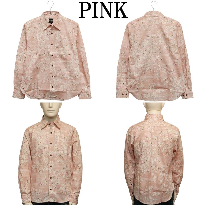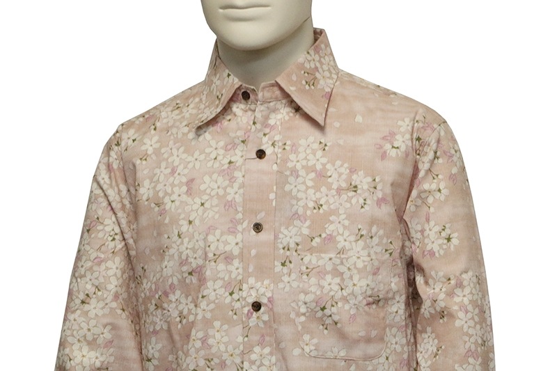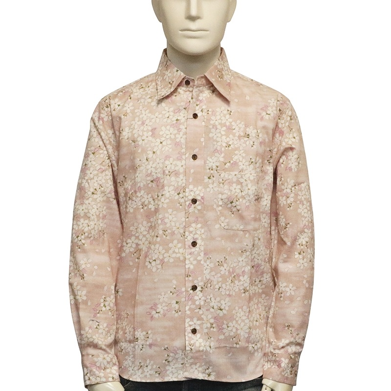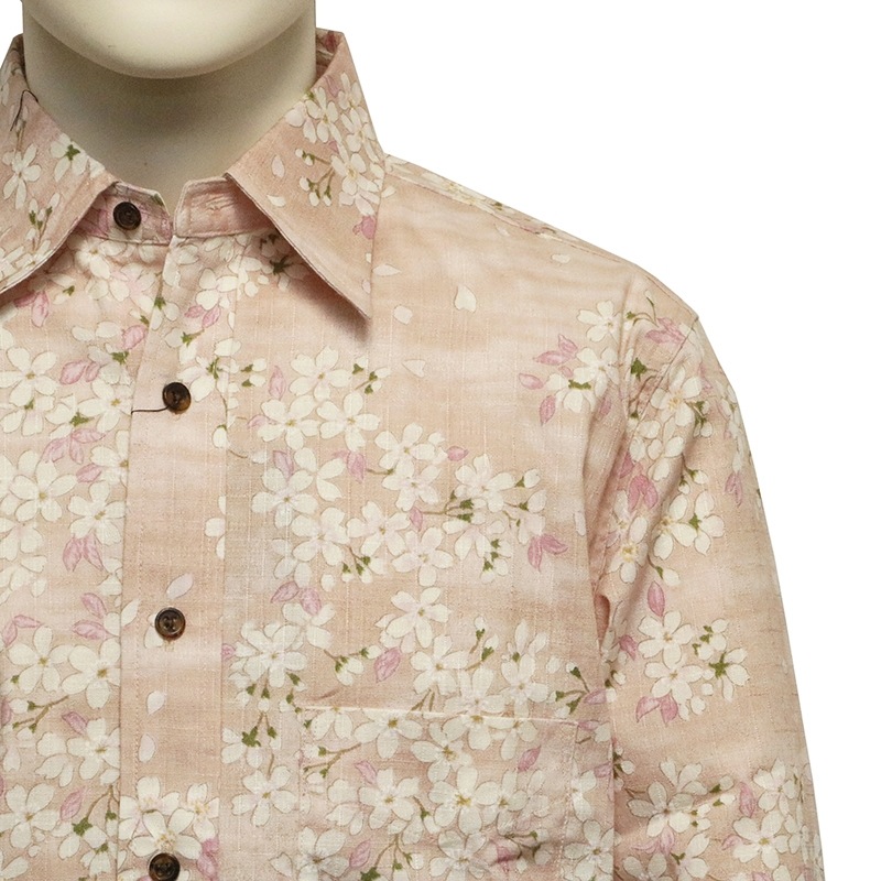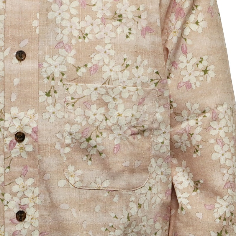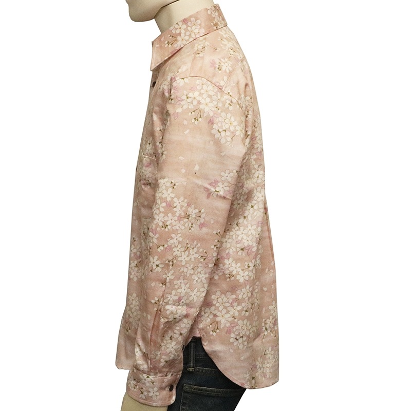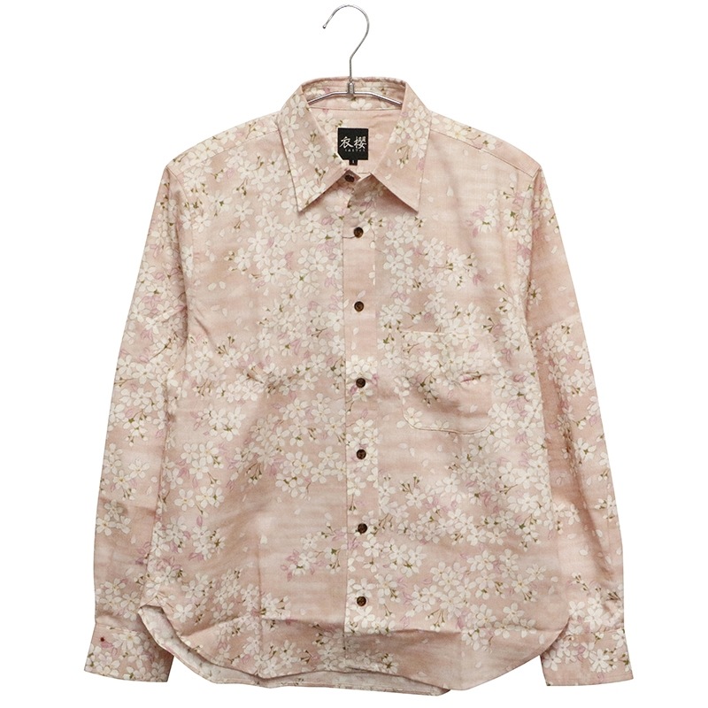 霞舞桜 柄 サザンクロス 素材 和柄 長袖 レギュラーカラー シャツ