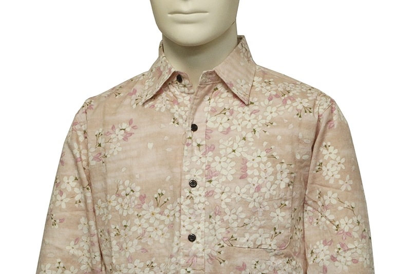 桜 柄 サザンクロス 素材 和柄 長袖 レギュラーシャツです。