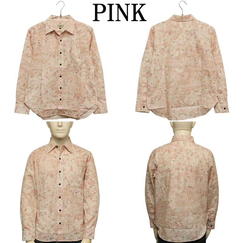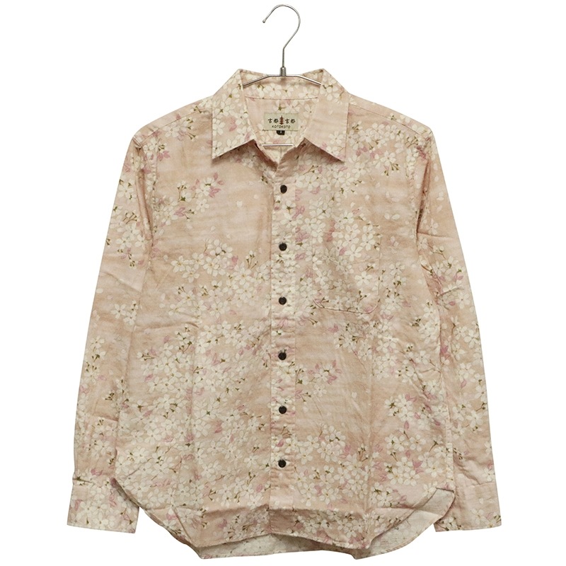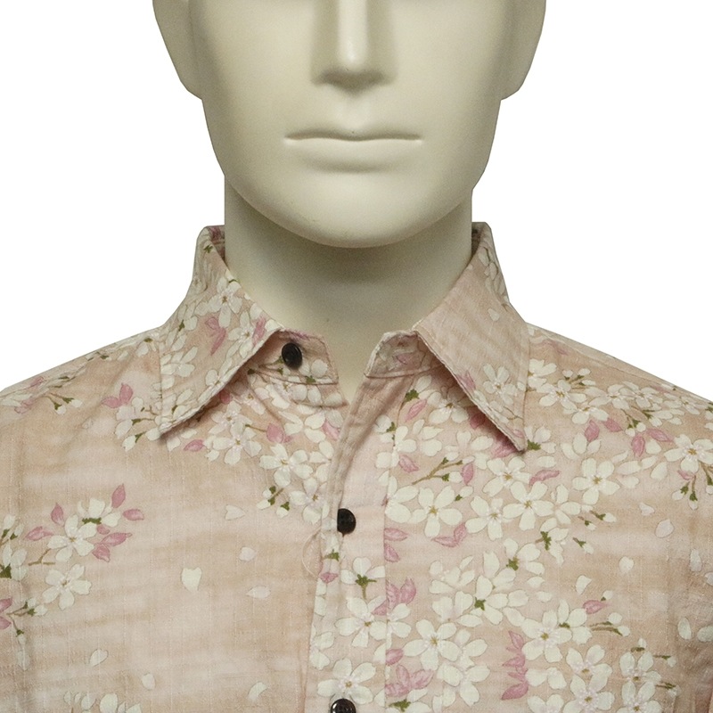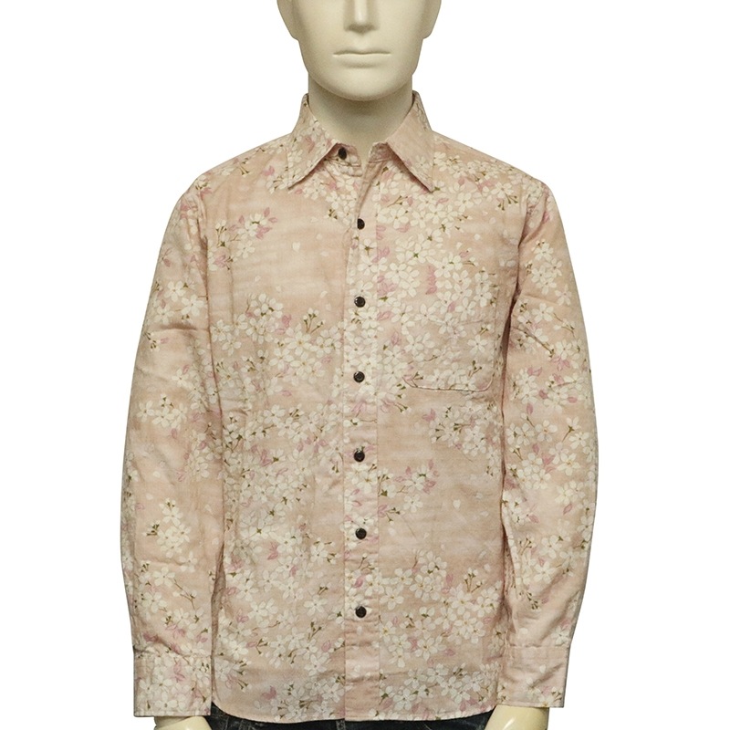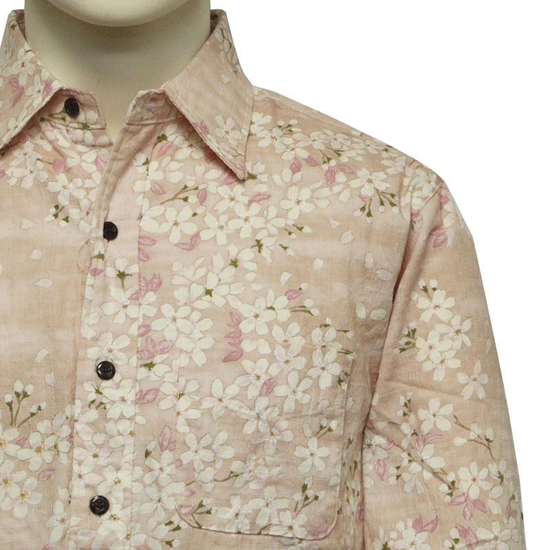桜 柄 サザンクロス 素材 和柄 長袖 レギュラーシャツ