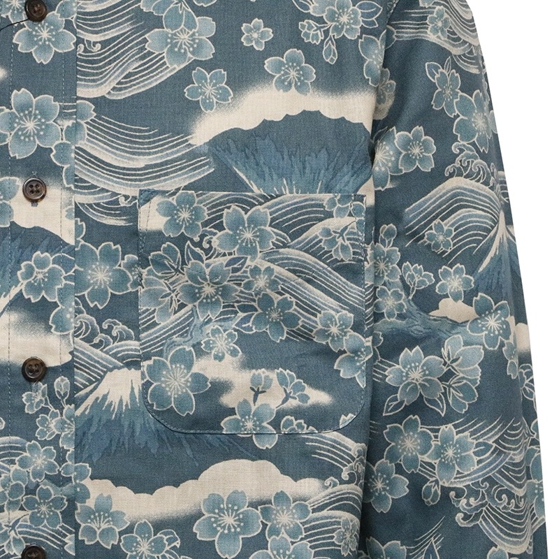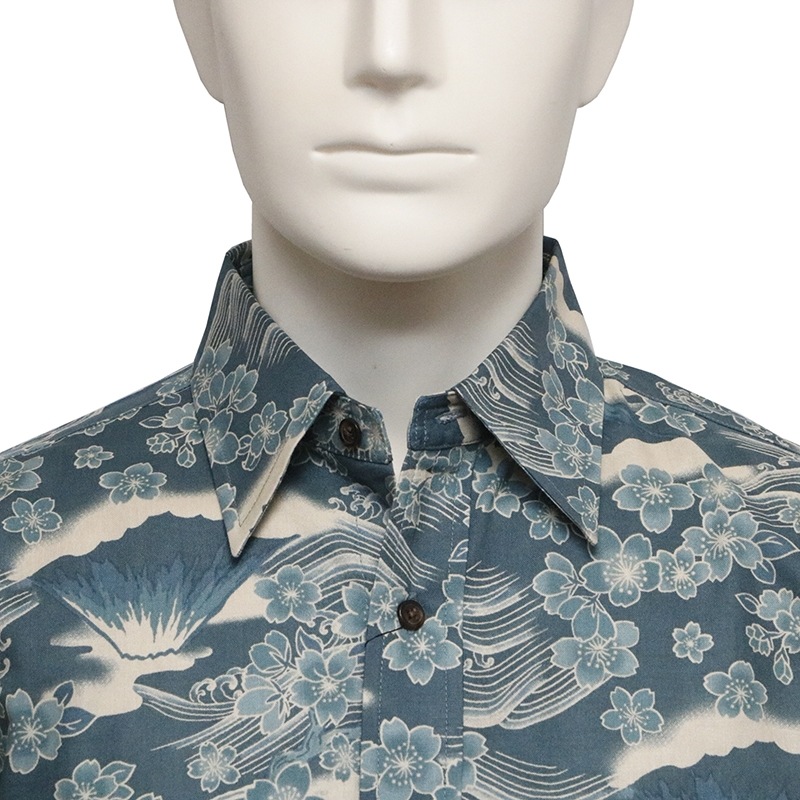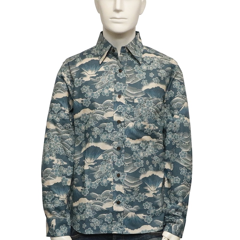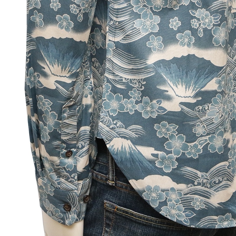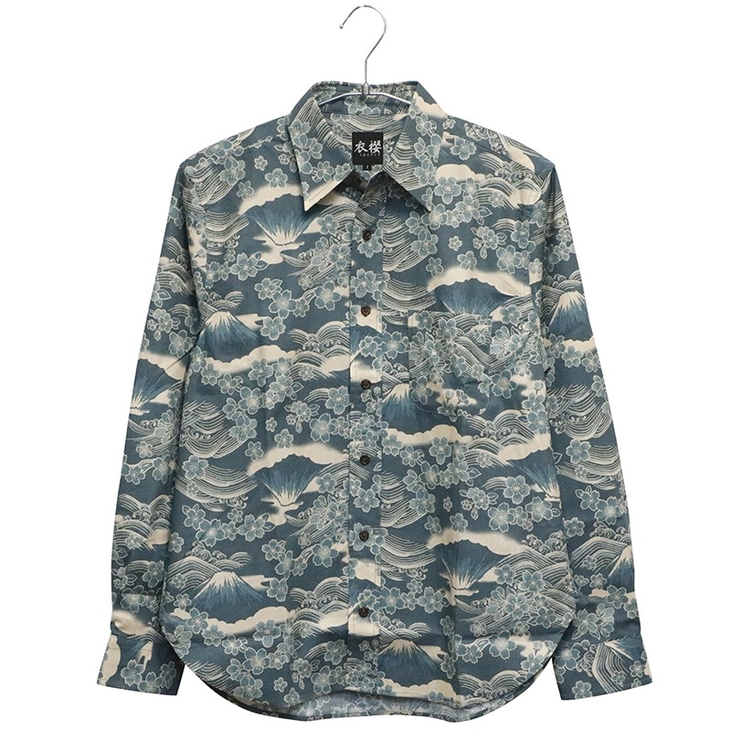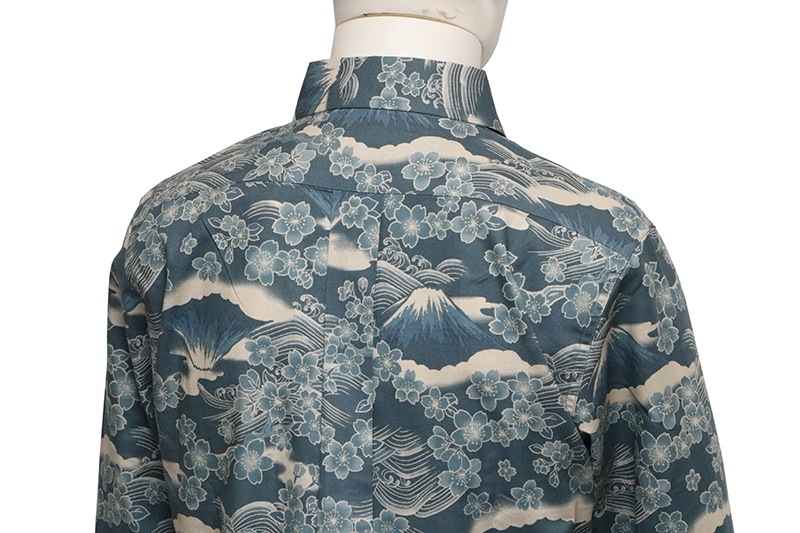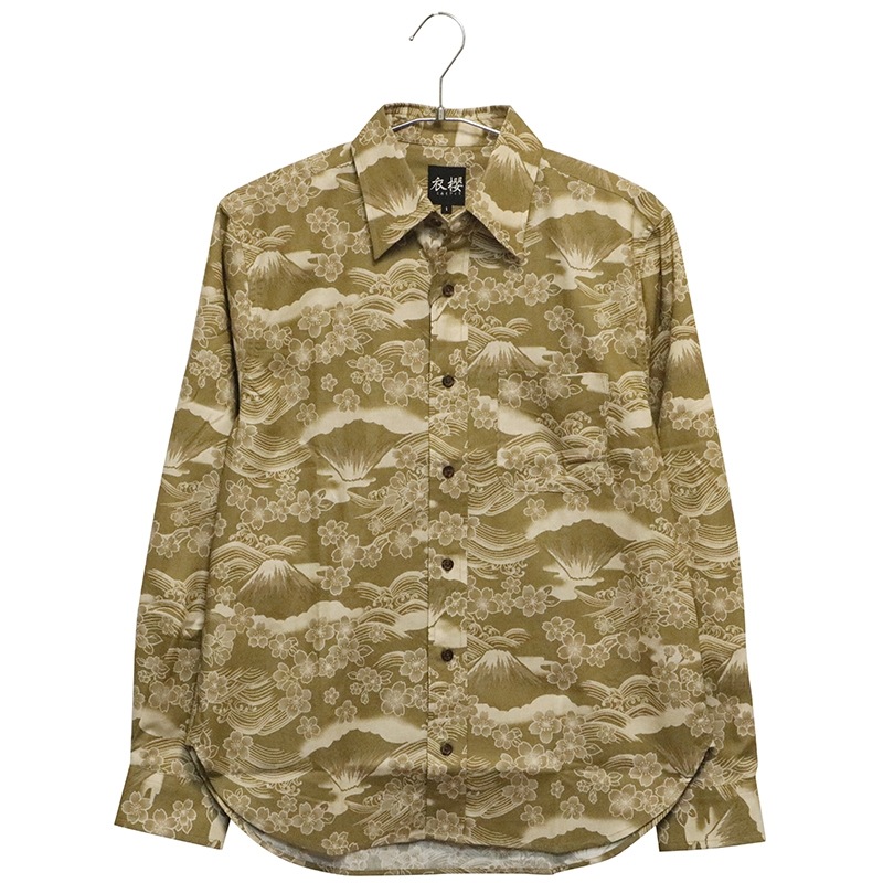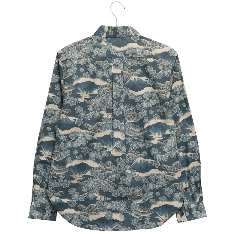 桜富士 柄 長袖 レギュラーカラー シャツ シーチング 素材