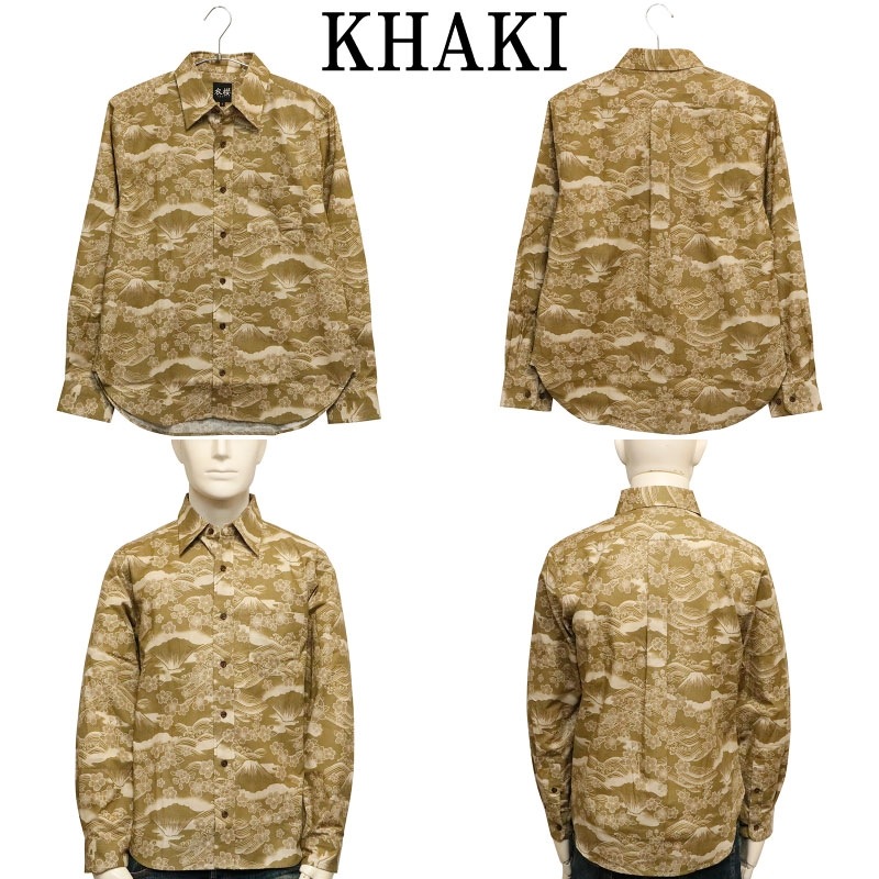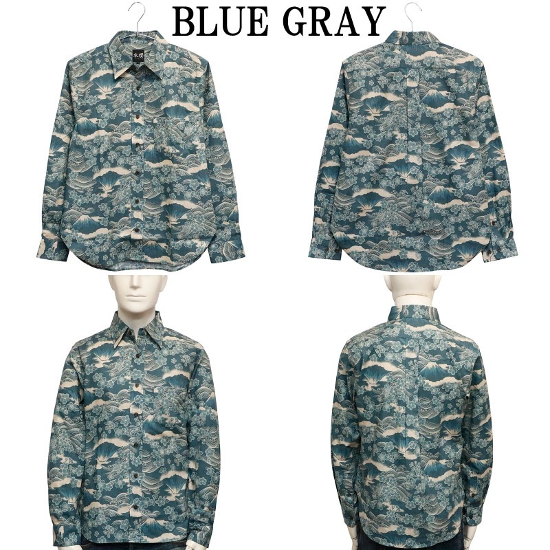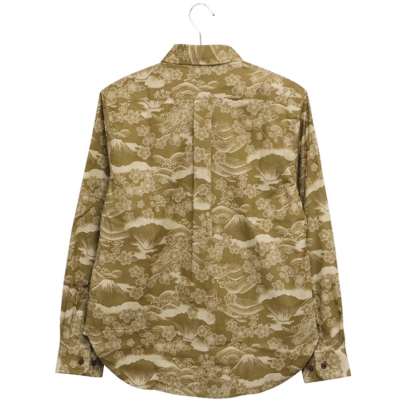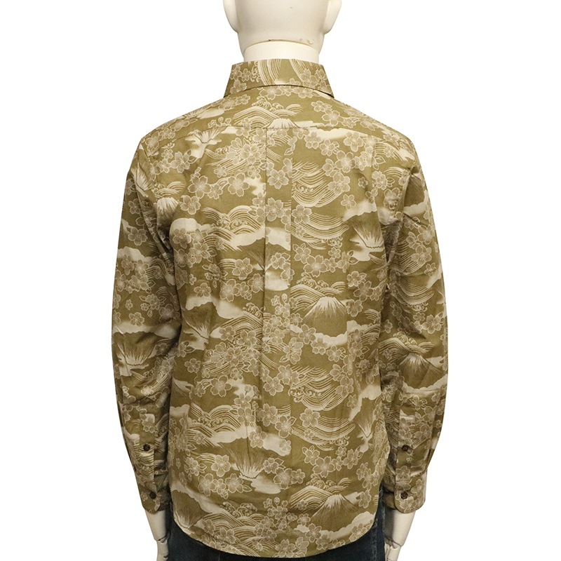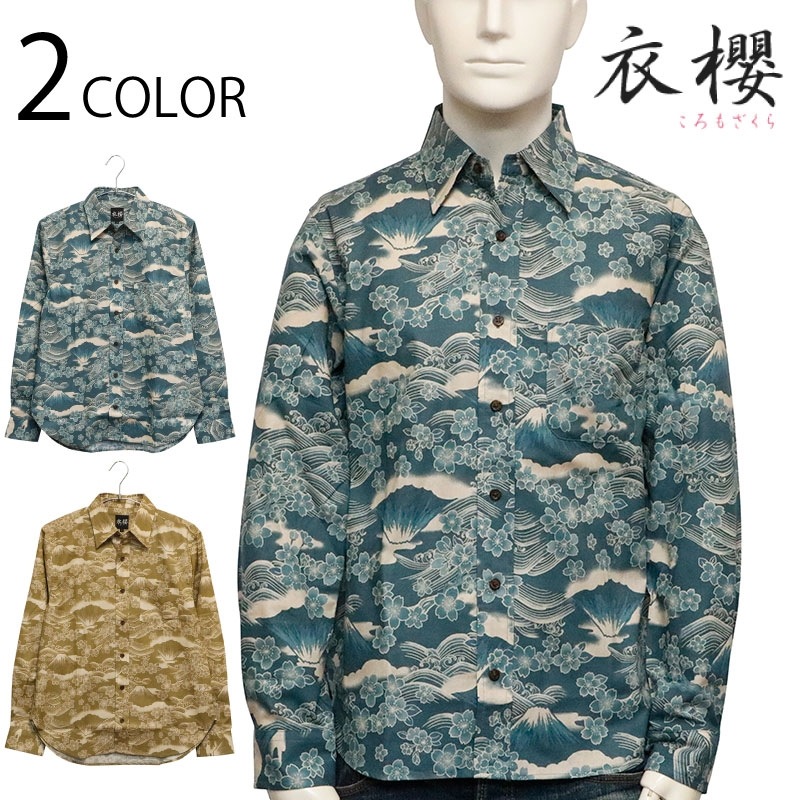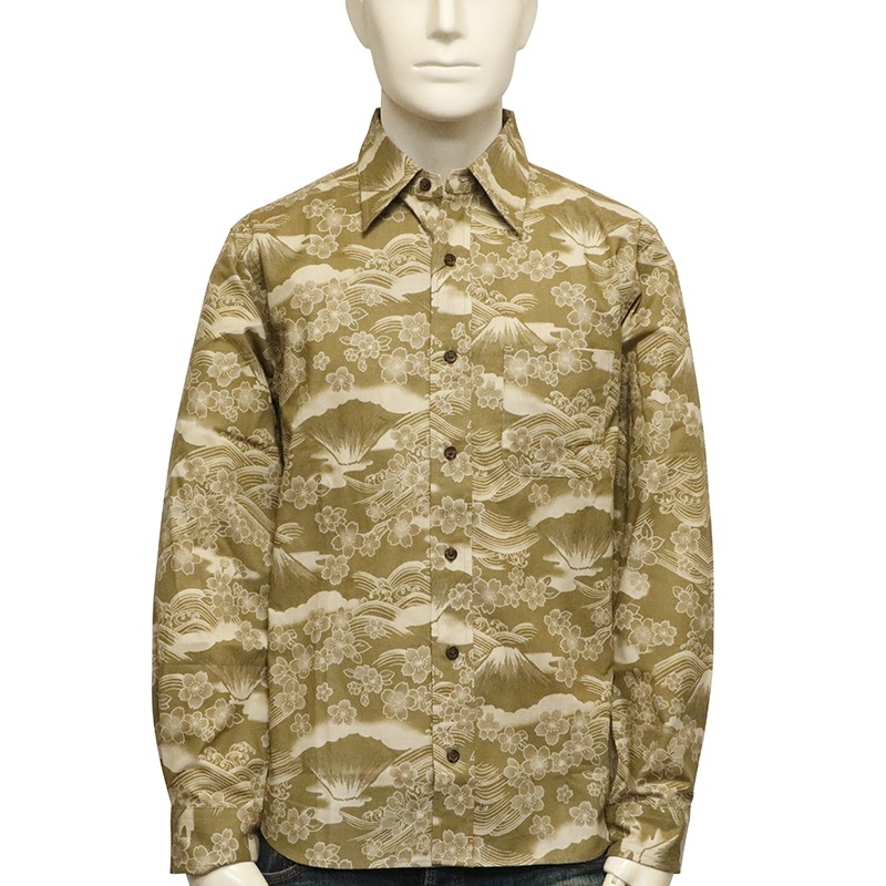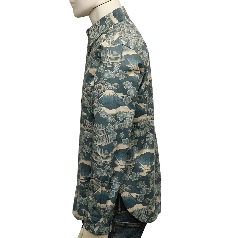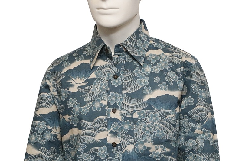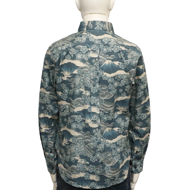 桜富士 柄 長袖 レギュラーカラー シャツ シーチング 素材