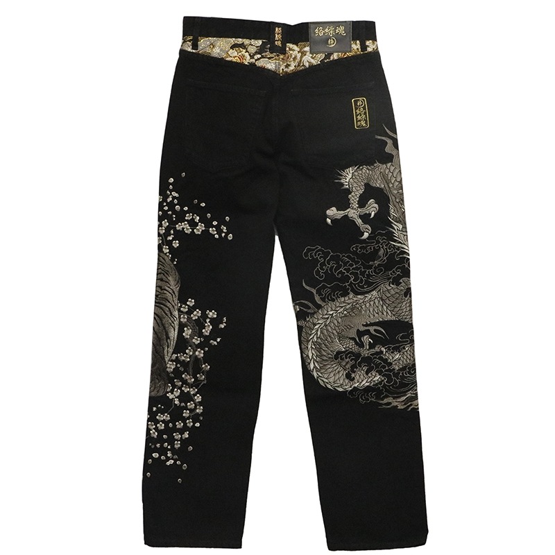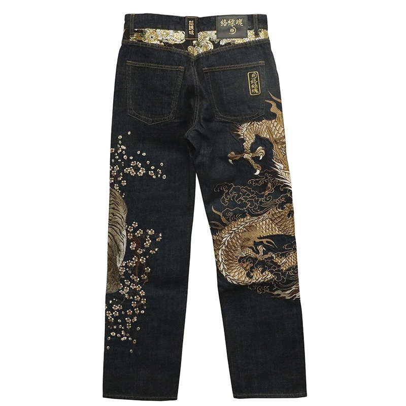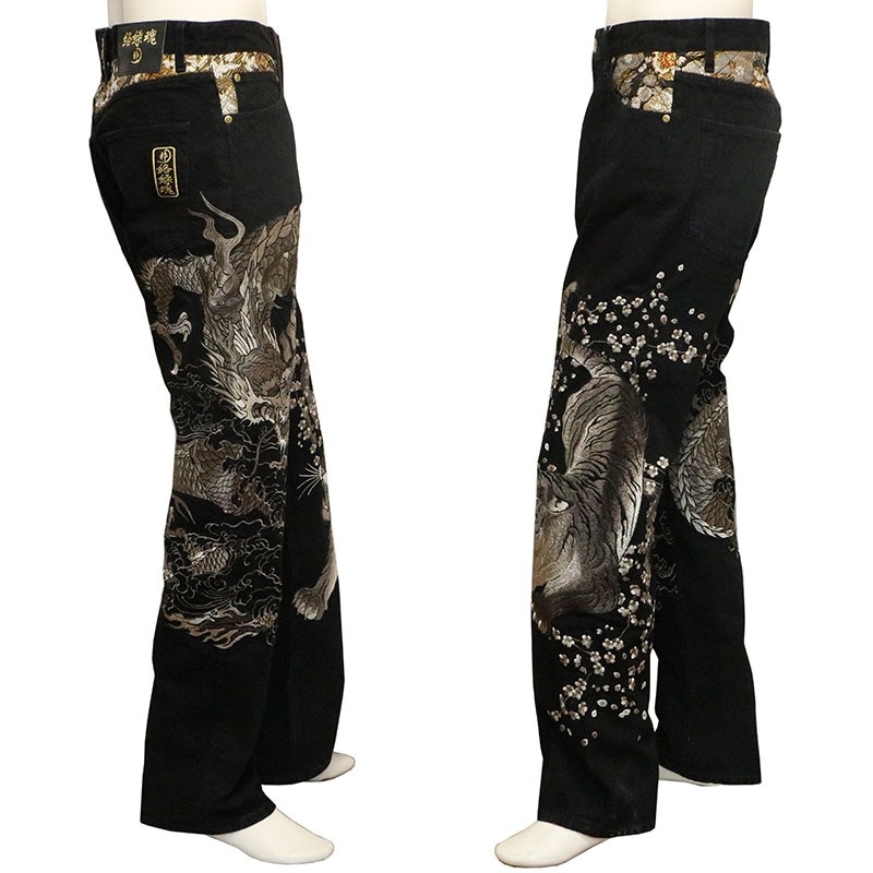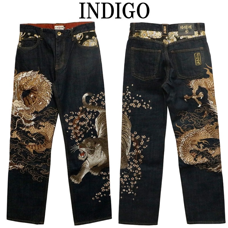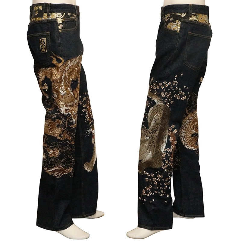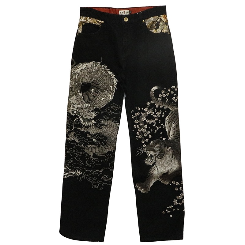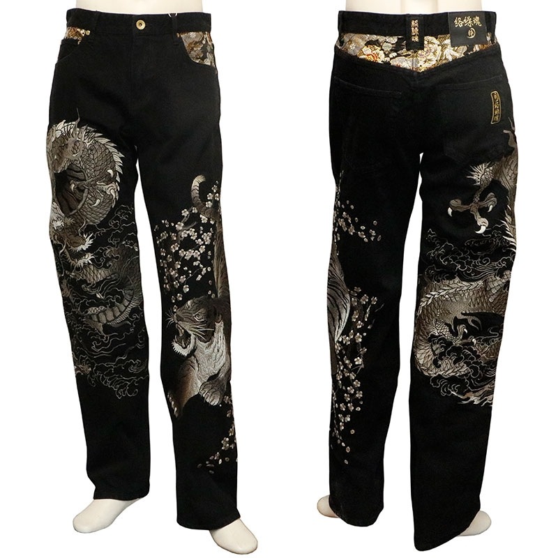 龍虎 柄 刺繍 和柄 デニムパンツ