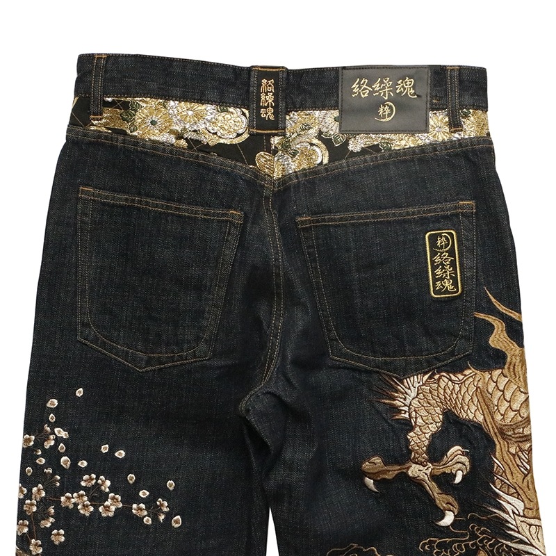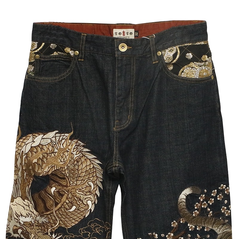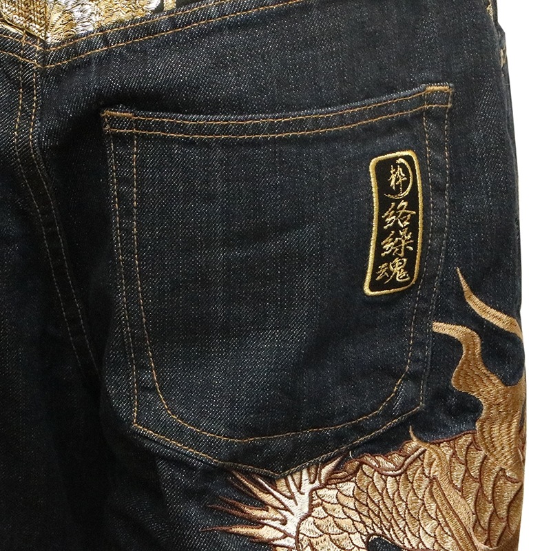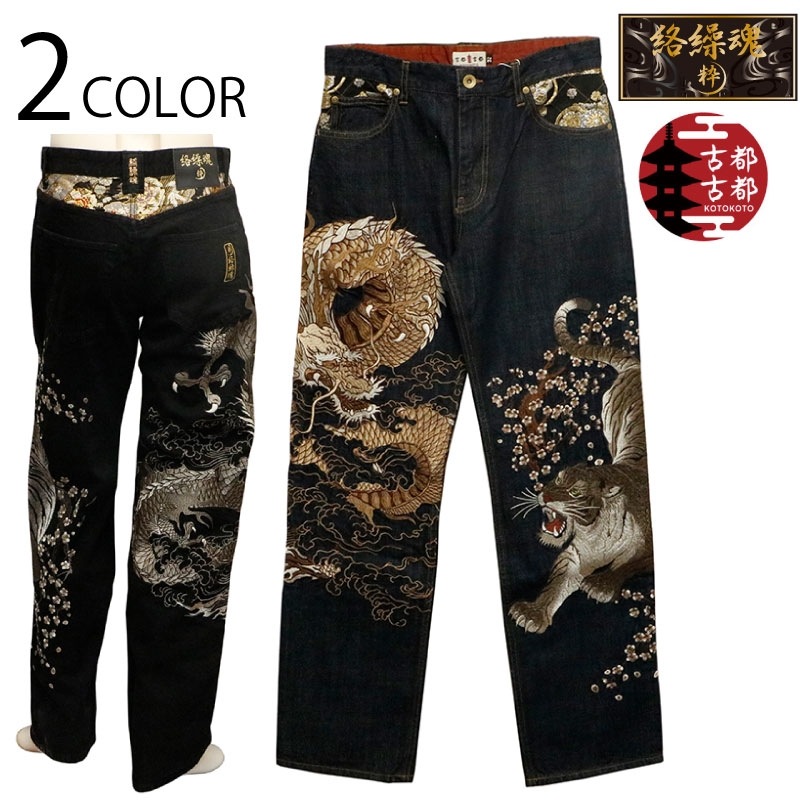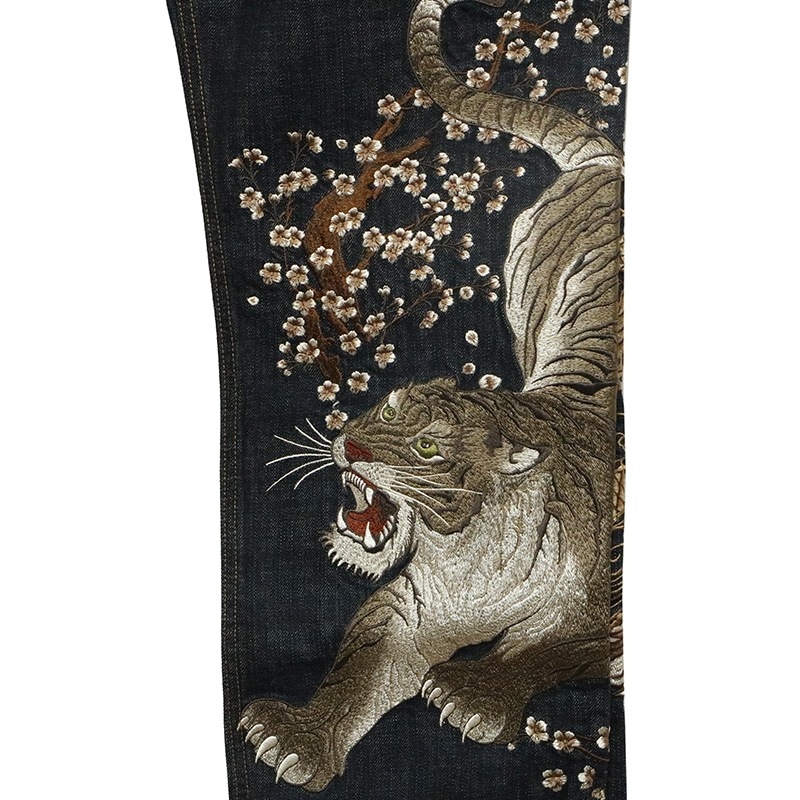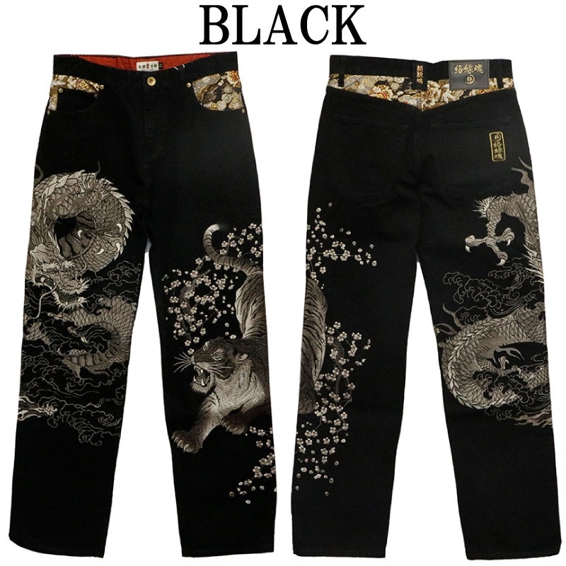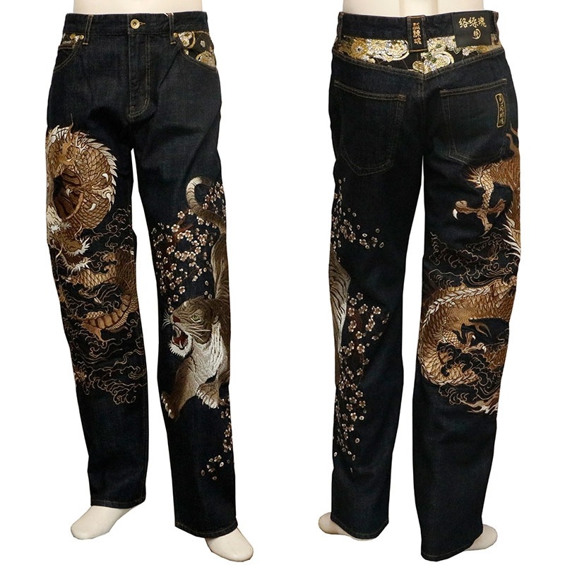 龍虎 柄 刺繍 和柄 デニムパンツ