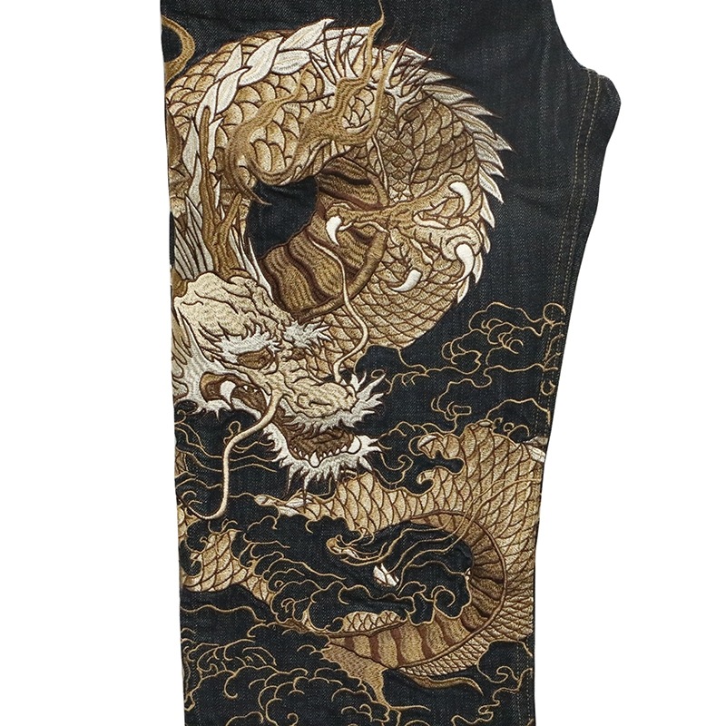 龍虎 柄 刺繍 和柄 デニムパンツです。