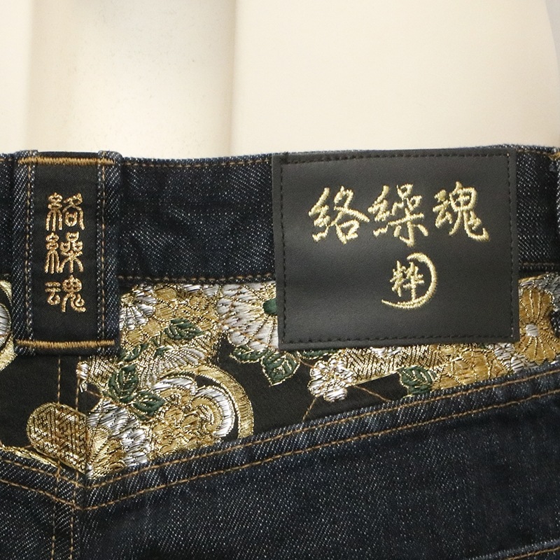 フロントポケットとバックヨークには金襴ジャガード織りの生地を切り替えました。