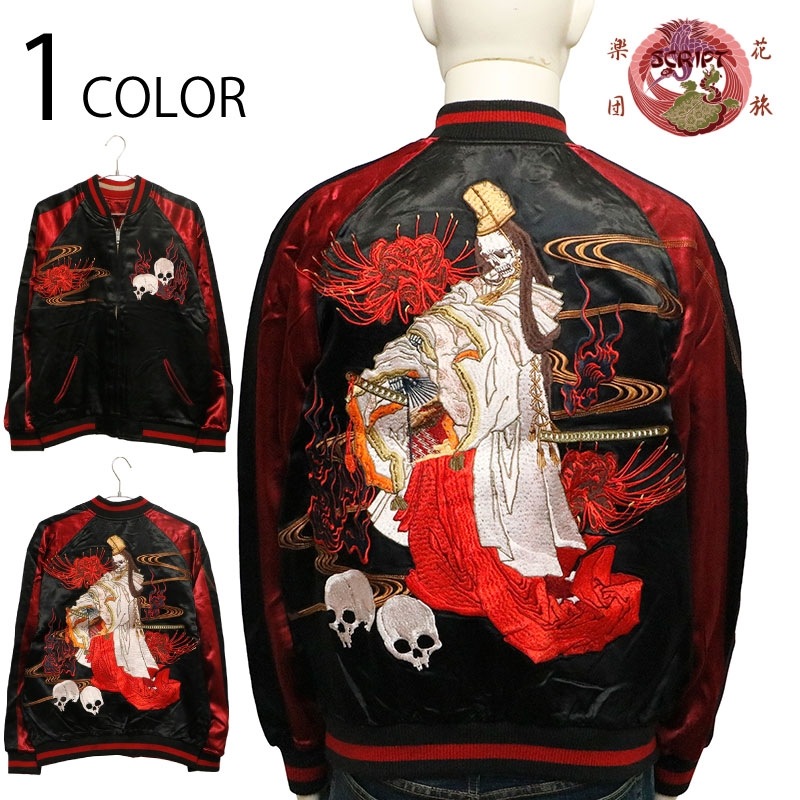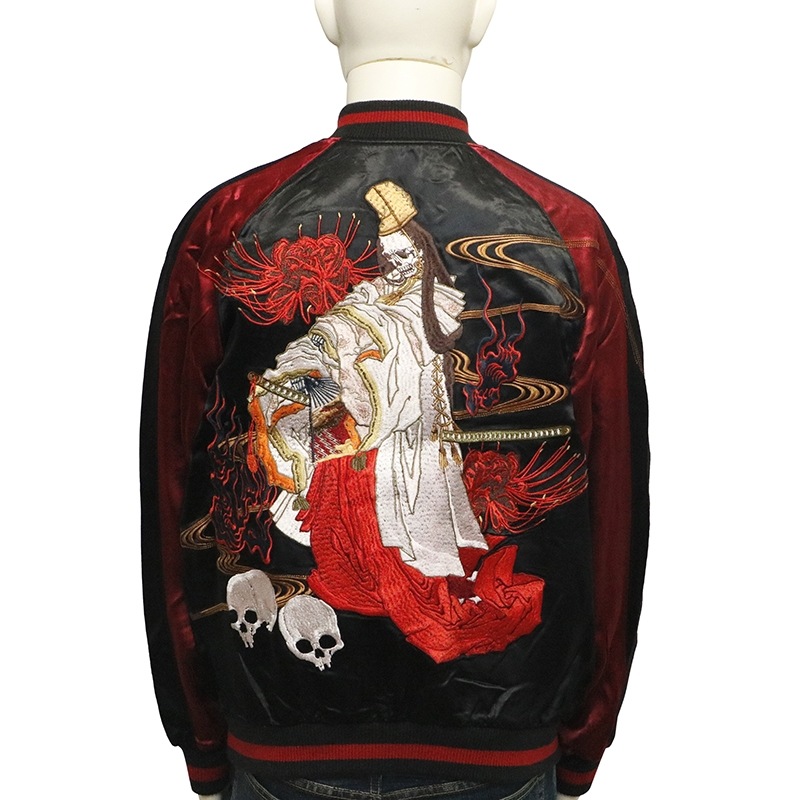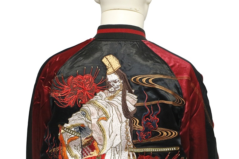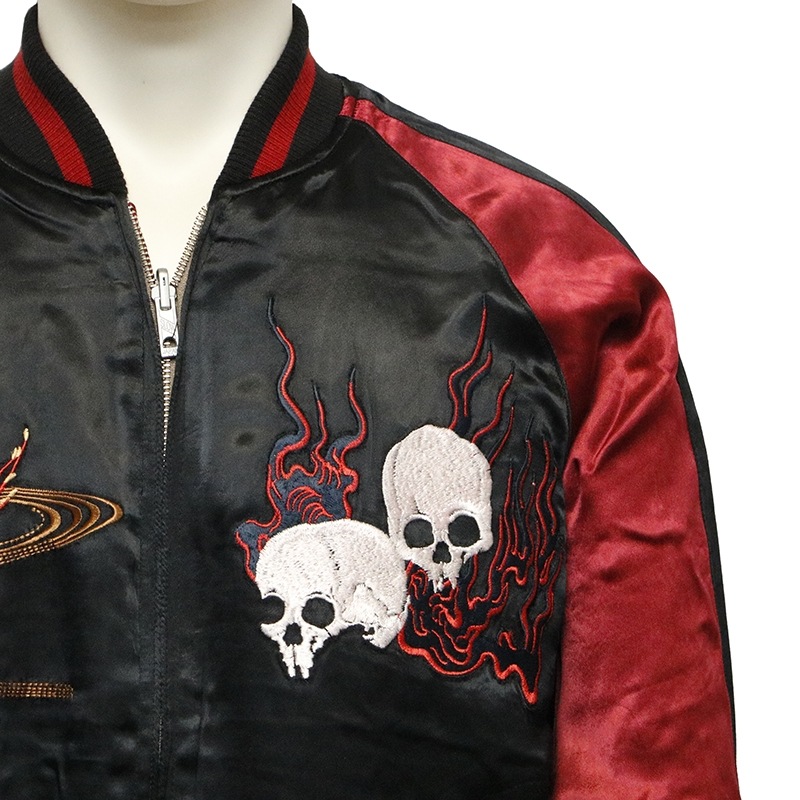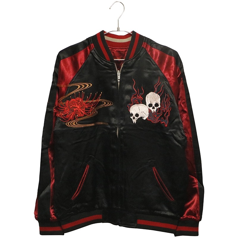 白拍子 髑髏 柄 刺繍 和柄 リバ-シブル スカジャン 古都古都別注