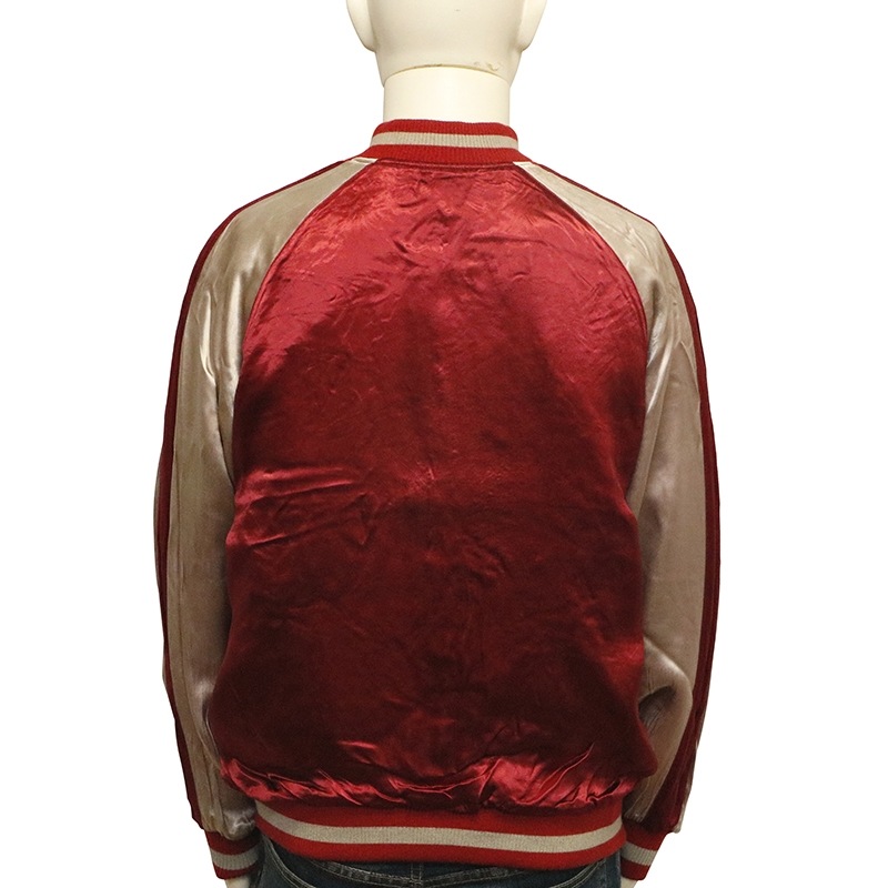 なお、レーヨンの性質上と加工による糸切れや糸とび、染め傷等が発生致します。それもレーヨンスカジャンの味としてご理解下さい。
